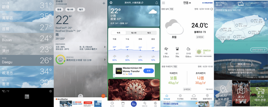 一大堆的有的沒的相類似問題留言,各大版主部落客們最怕就是遇到這些問題,沒完沒了!心想我們又不是天文台,怎能100%告訴你天氣如何呢!我們靠的都是跟大家同樣,看"天氣APP"而已! 有些人會特意在社團內費無謂的心思,每天在報告當天天氣預告,他們不是神人,他們亦只是依照APP預測打出來給大家看!亦沒必要這樣做,因為隨便一部手機就能查到,不像貨幣匯率,每天每時每地每店都不同,需要有人整理好詳細列寫出來!其實大家無需多此一舉翻找這些人的所謂天氣預告,因為只要用你的手機便可把全濟州、全韓國,甚至全世界的天氣預告一一掌握!無需靠人你都可以是天氣預告達人!超簡單!