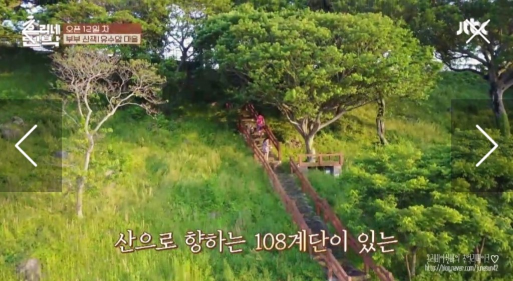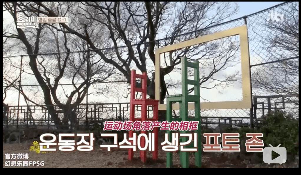 大家還記得嗎?!《孝利家民宿2》第15集中孝利夫婦二人帶著潤娥來到一個小區中,然後走上一條超長的108階梯登上小山丘,來到一個四周被樹木圍繞著的運動場,最後還爬上巨型木椅跟巨型相框和小區美景合照, 而這裡同時是當年孝利夫婦經常去散步運動的地方。