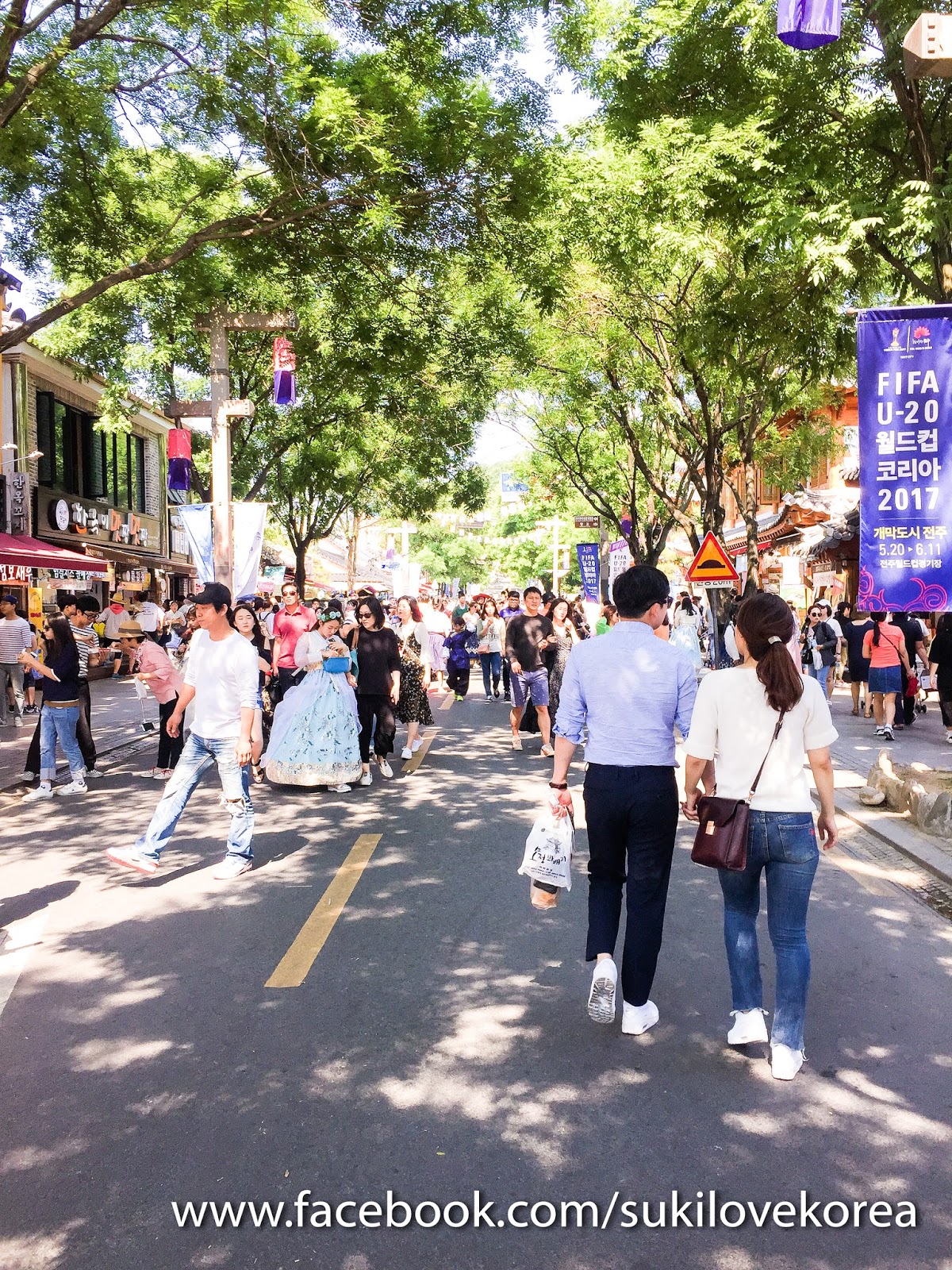 經過晴烟樓一直走大概5分鐘就會走到全州韓屋村的全要大街上,小食店/咖啡店/精品伴手禮店/飾品店/韓服租賃店等等都一一集中在此,雪姬去的當天剛巧碰上韓國人的假期,所以韓國人是超多,反而遊客很少。但人多的關係,完全沒有空間可以拍照,故此基本上。。。我們只是拍了20張相就放棄了,而20張都是滿滿的”人頭”。