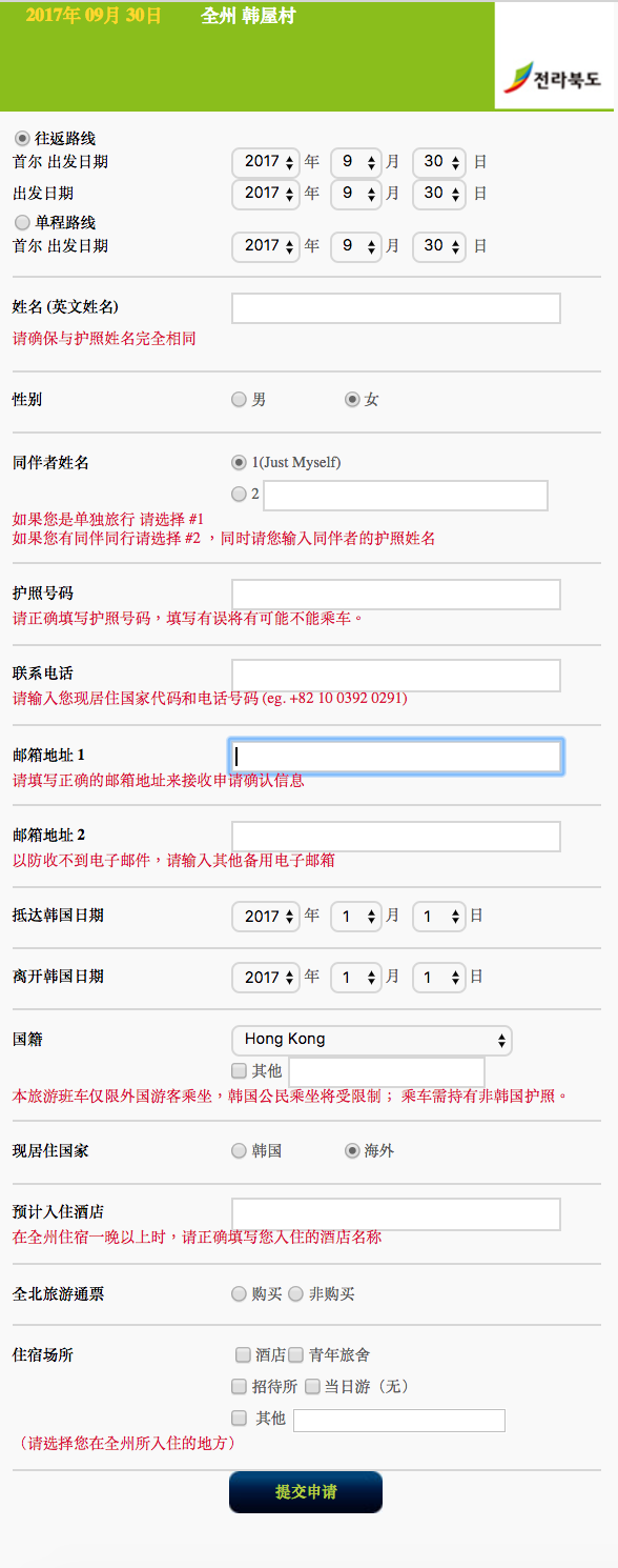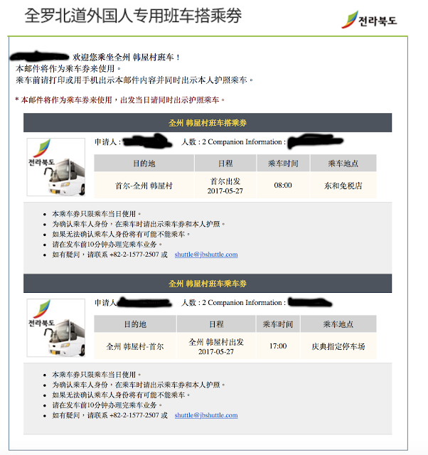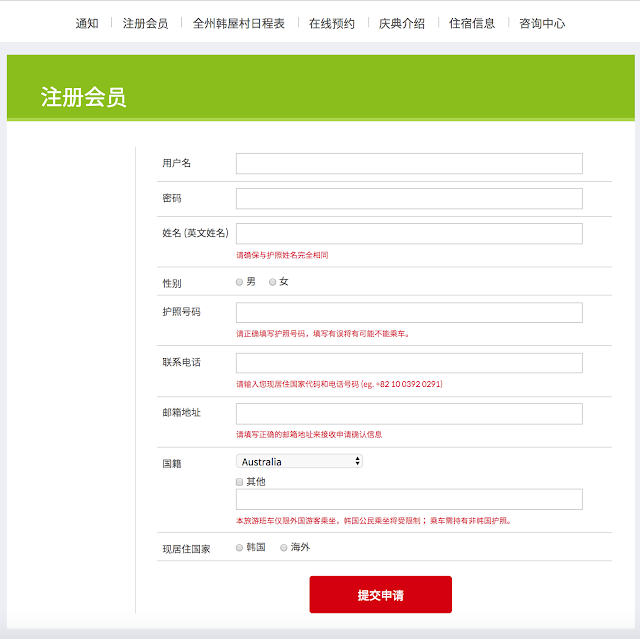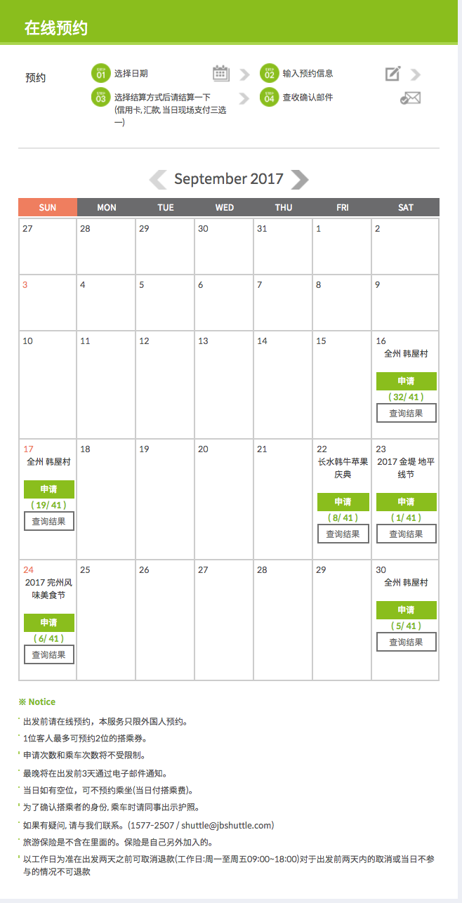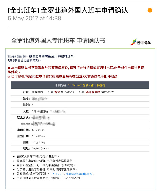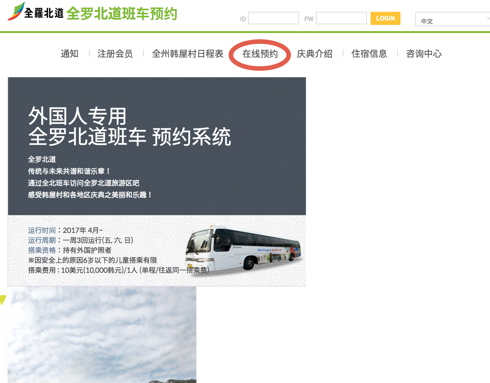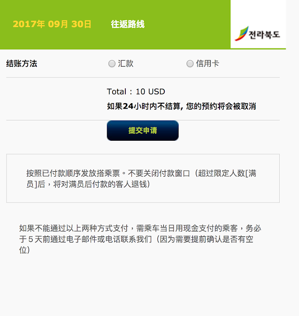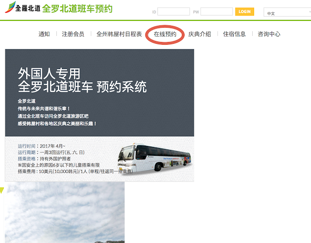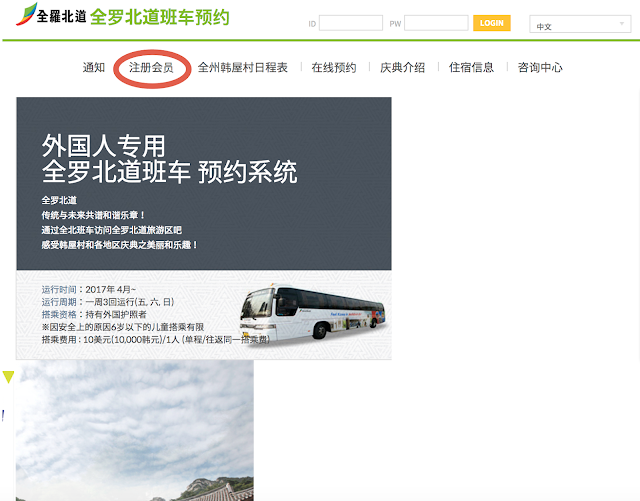 大家可以在出發一星期前到全羅北道班車網站作網上申請,先登記做會員,然後便可預約座位,非常方便。