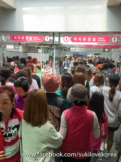 話說在去程時,我會去的休息站很大,但只有一個超多間隔的女廁,但當時現場有超過100個人塞爆洗手間在等候中,同時亦有顯示屏顯示空廁位置,但在等候了10分鐘我們還是站在門口進不了去,其間有很多人在插隊,亦有無敵耆英版鴨仔團以人龍形式(大家排成一條隊後面緊緊攬著前面的人連續10個人。。。一條人龍全不客氣的由最後排直插到最前排,這種超誇的插隊方式令我們呆了,全場不只一條插隊人龍啊!而這些人都是正宗當地的阿豬媽是也!)