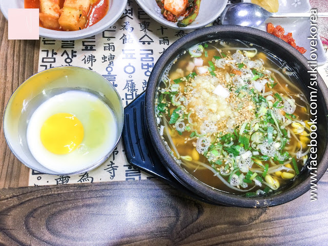 我們去到時因為時間尚早,小店只有幾台客人正在用餐,一坐下來想都不用想就即點白鐘元推介此店的招牌美食豆芽湯飯便對了(留意:豆芽湯飯原本是辣的,若果不能吃辣可請店員不放辣或少辣,但基本上加一點點辣味道會更突出啊!我們因為之前吃了很多熱氣食物,又睡眠不足,當日已經喉嚨痛,所以就點了不辣,但後來還是請店員加一點點辣來吊味!),每個客人十吃它吃得津津有味的,旁邊客人的湯飯氣味直捲到我們的鼻。。。肚子餓了!