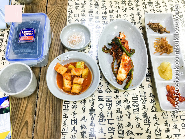 點完餐後,店只便會拿拌菜給客人,有超入味的傳統泡菜(正)、蘿蔔泡菜、生醃魷魚、小魚干等等,每款都充滿傳統的味道!