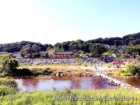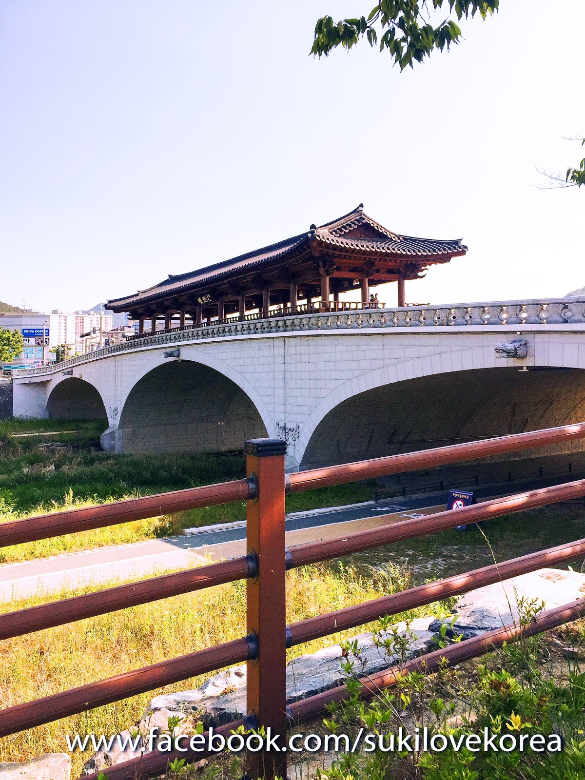 另外令大家要走超遠路的第二個重要原因是,由 國立非物質遺產院 到 全州韓屋村最接近的行人天橋竟然工程進行中而不能使用,不然原先走路去,只是需要5-10分鐘左右。 因改路了,最後我們必須經過全州其中一個著名景點晴烟樓所在的石橋才能到達目的地。