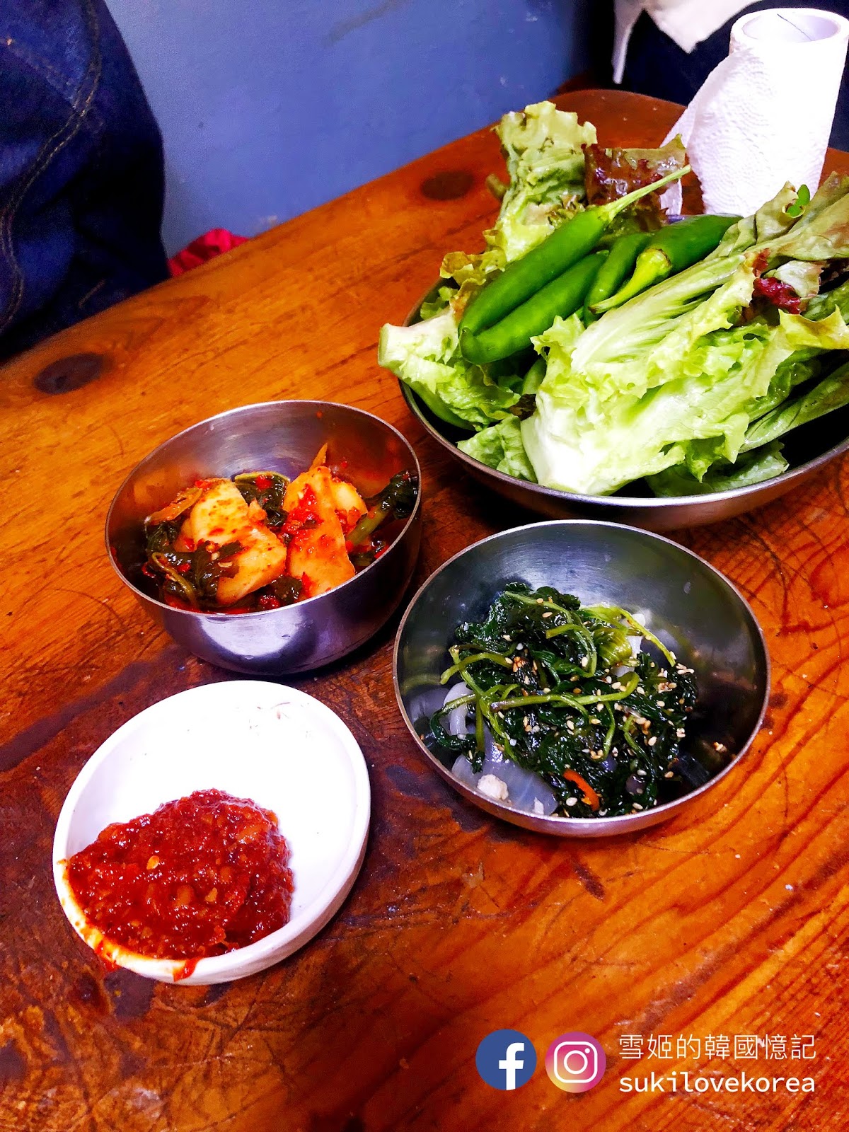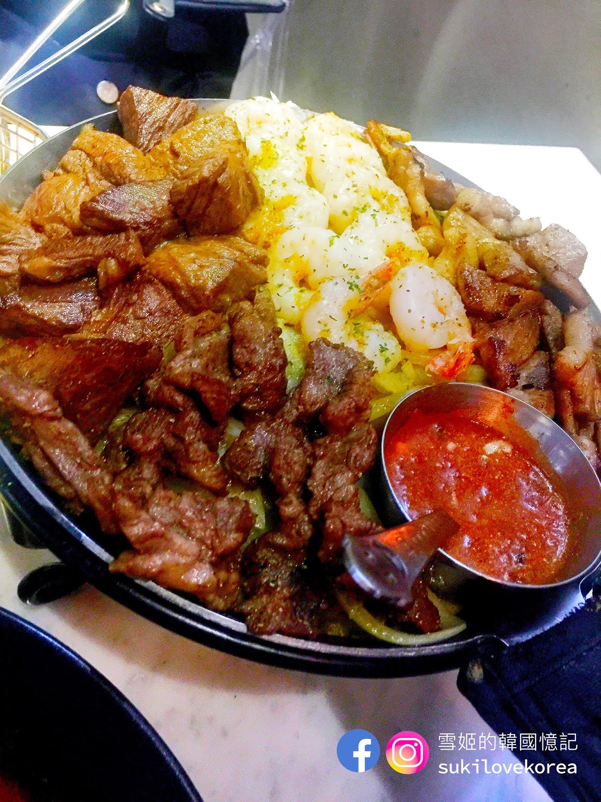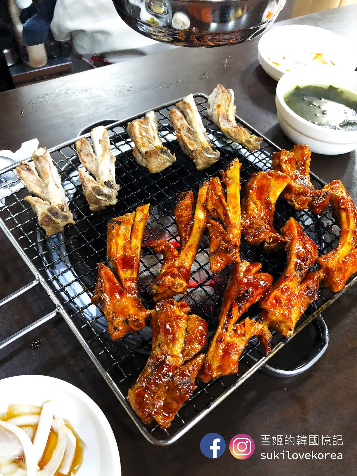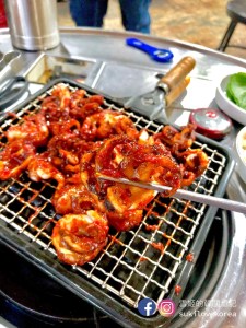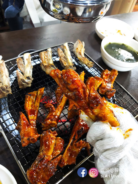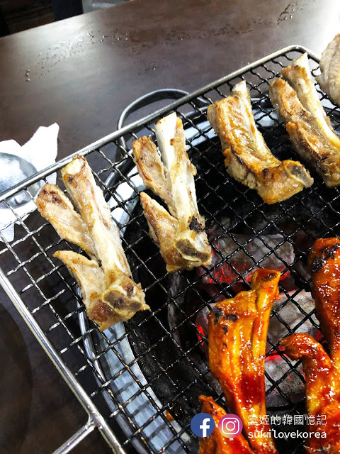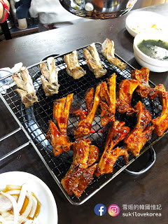 店內提供四種口味的烤排骨,原味鹽燒、小辣、普遍辣和辣味,即是分不同辣度, 怕太辣的朋友選小辣便好, 選擇非常多。 排骨每件都大大隻的, 而且啖啖肉, 大家只要捉緊火喉烤, 嫰肉的惹味加啜啜骨香, 一回神已經吃光了, 超級美味的烤排骨啊。 我們當時點的是辣味和鹽燒, 辣味雖然非常之辣, 但我們還是不斷讚嘆它的美味邊流著汗極速吃光, 吃完還要啜啜手指呢, 哈哈。雪姬第一次在韓國吃這種烤排骨就是這店, 自從吃過這家的烤排骨雪姬便愛上吃了,不斷的在找首爾和濟州有沒有類似的呢!