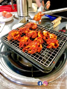 這裡的烤章魚分三種辣度, 少辣、普遍、辣味,大家也可根據自己的喜好來選擇, 我們當時選了普通的,其實已經頗辣。一開始店員把所有章魚放到烤架上, 然後便開始幫忙烤熟, 最好吃就是沾沙津醬伴著吃非常美味, 但留意的是烤章魚的味道比較濃郁,大家不妨像我們一樣點一個炒飯伴著一起吃就更好吃了!還有要點他們的綠豆煎餅都是客人必點的美食啊!