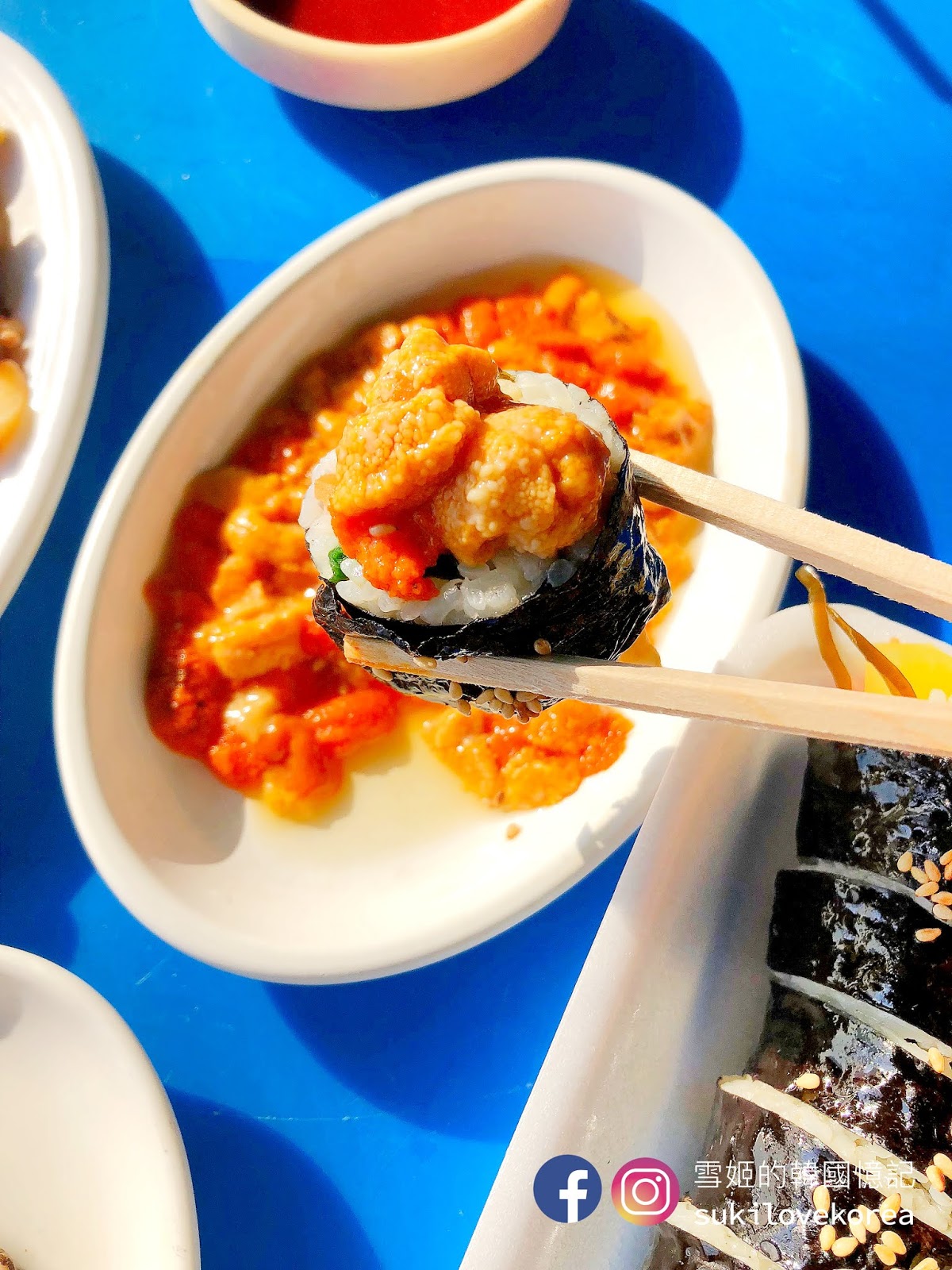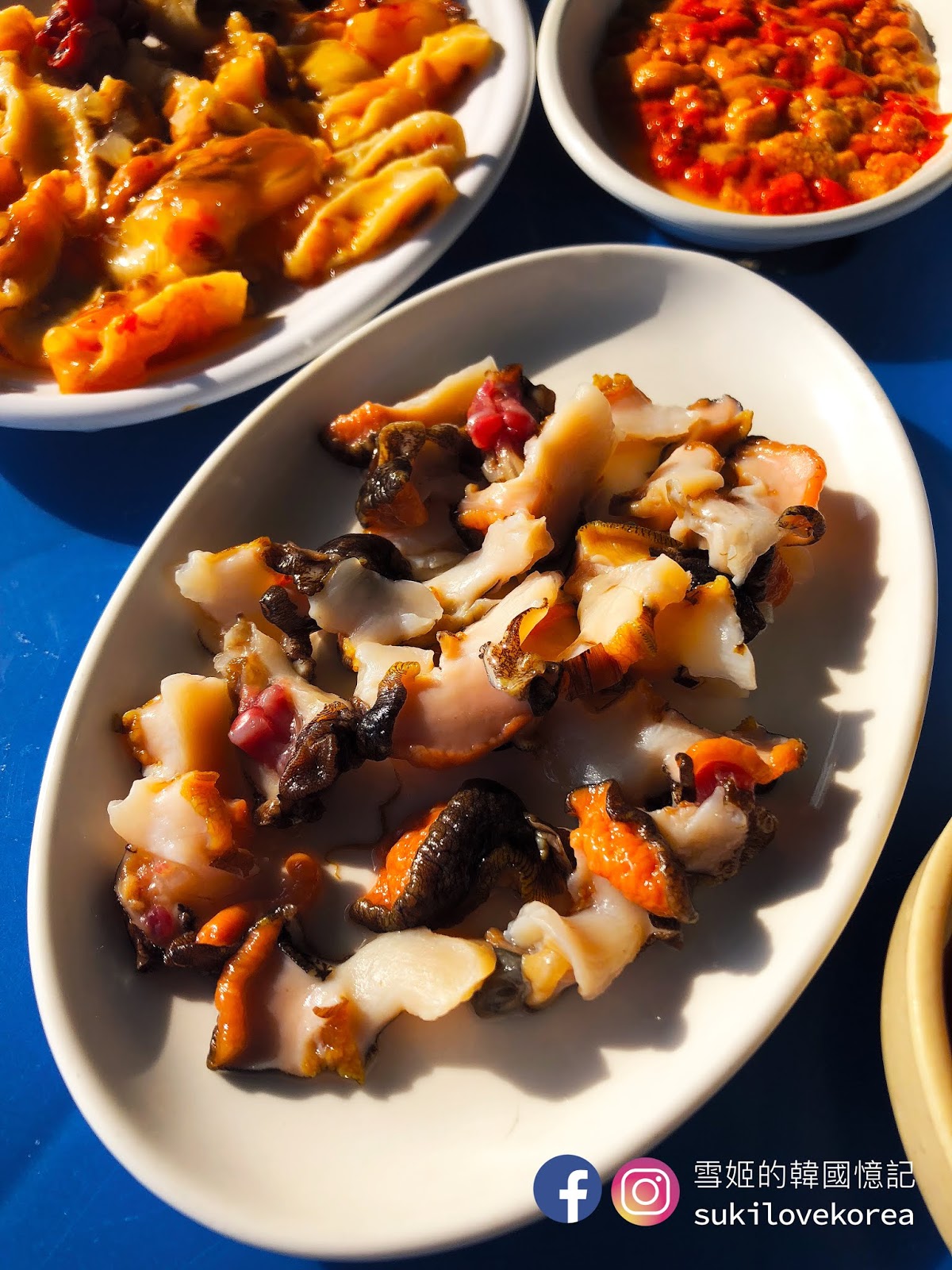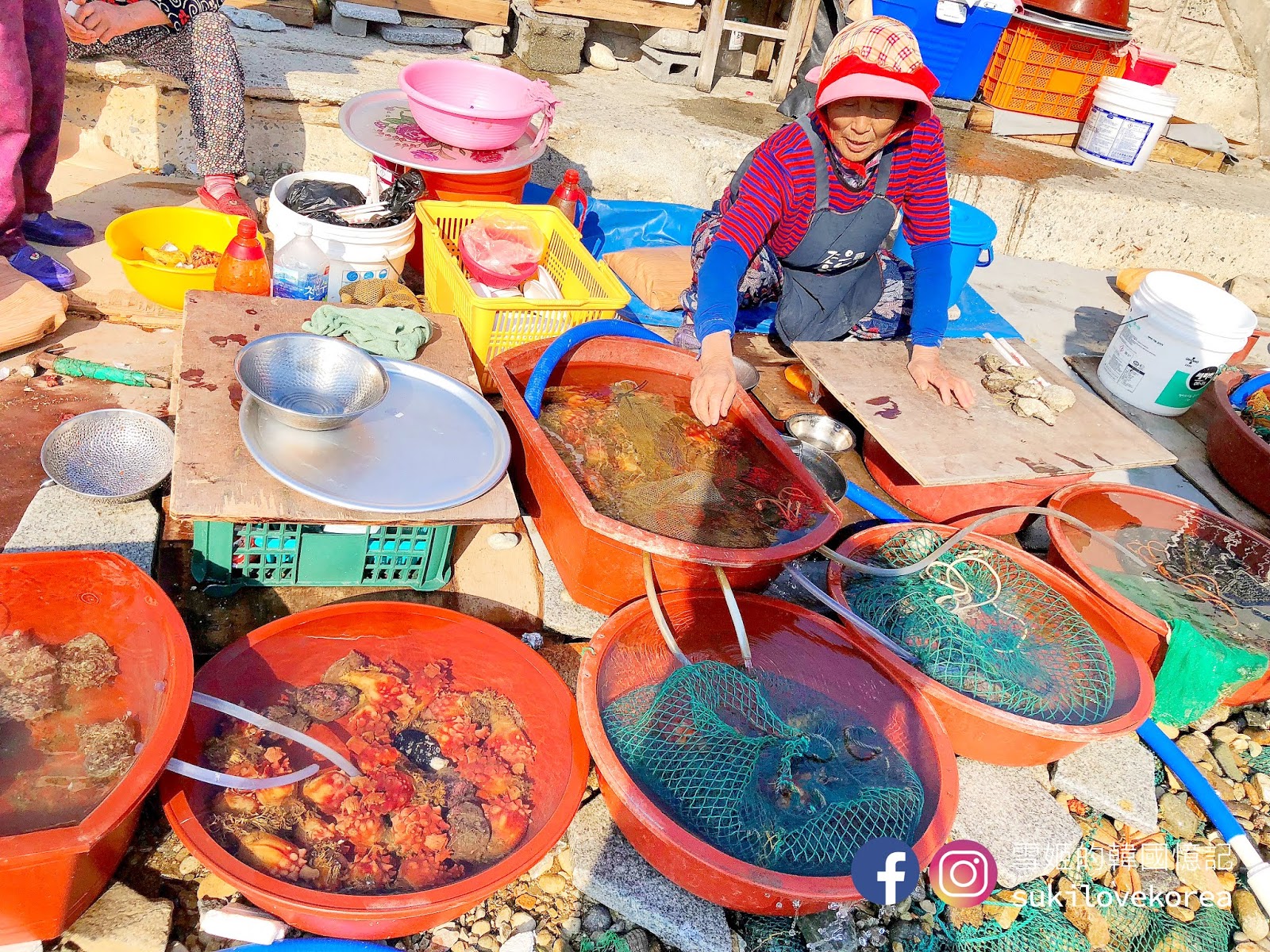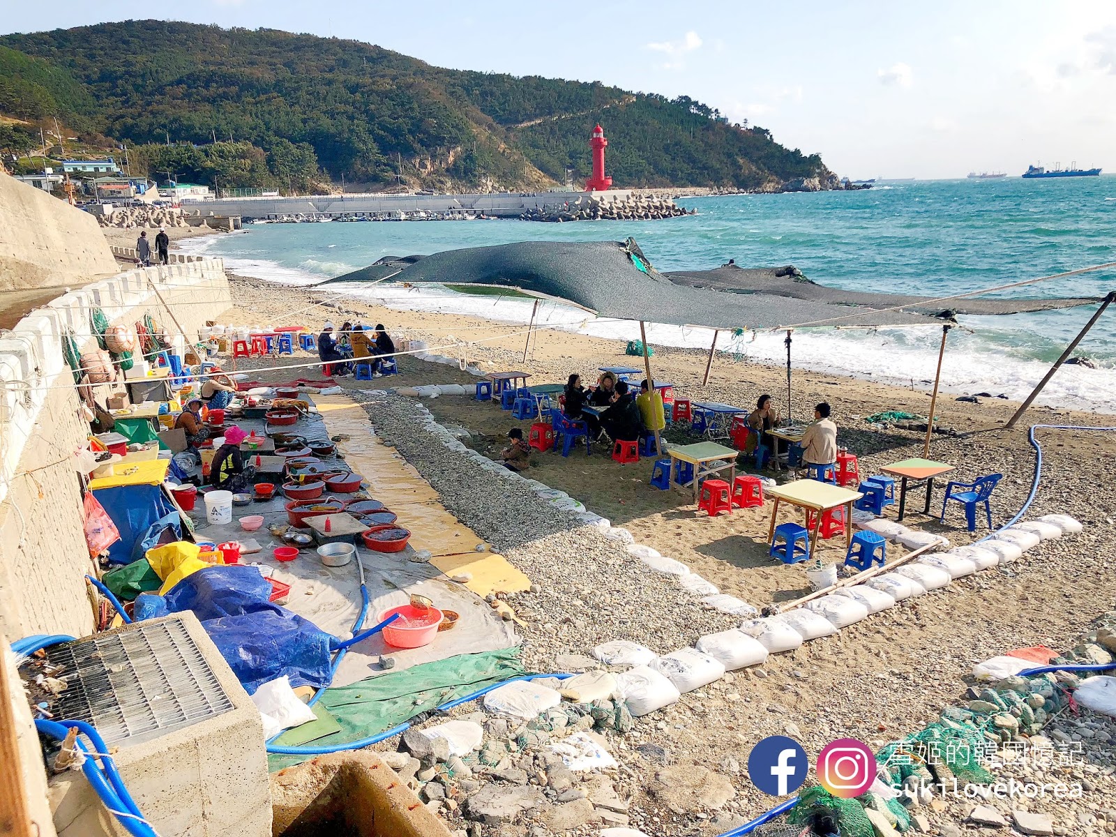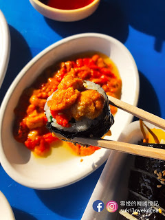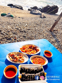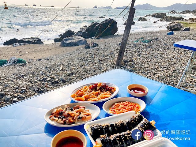 去到影島不妨去找海女吧,影島的海邊有一群海女搭起臨時帳篷,把新鮮即捕的貝類海鮮即場清洗切好給客人享用,大家先選好吃什麼, 然後便可坐在美麗的石灘, 一邊欣賞極美的影島海景, 一邊品嚐新鮮貝類, 這裡又是一個遊客都沒有, 因為下公車後還有走一段路, 加上海女不懂英文, 韓文能力欠佳是點不了餐的。我們隨意請海女選了一點給我們吃,然後必吃的是新鮮即劏海膽,非常鮮甜, 記得要追加一份飯卷, 把海膽放在飯卷上吃真奢侈!這餐其實蠻貴的,全部加上來5萬won啊!不過新鮮度滿分,打卡度爆分啊(雖然風超大嘆到傻)!