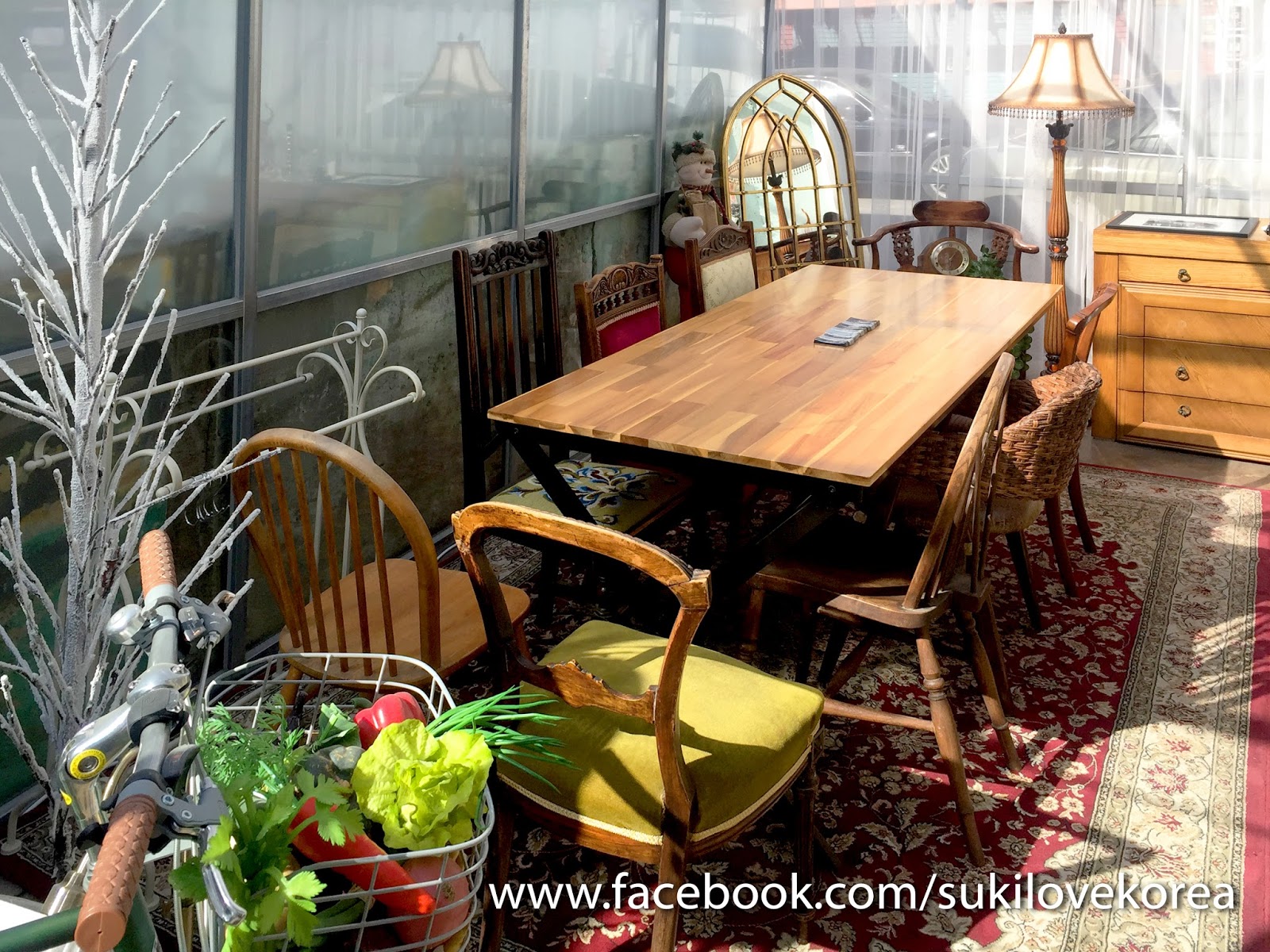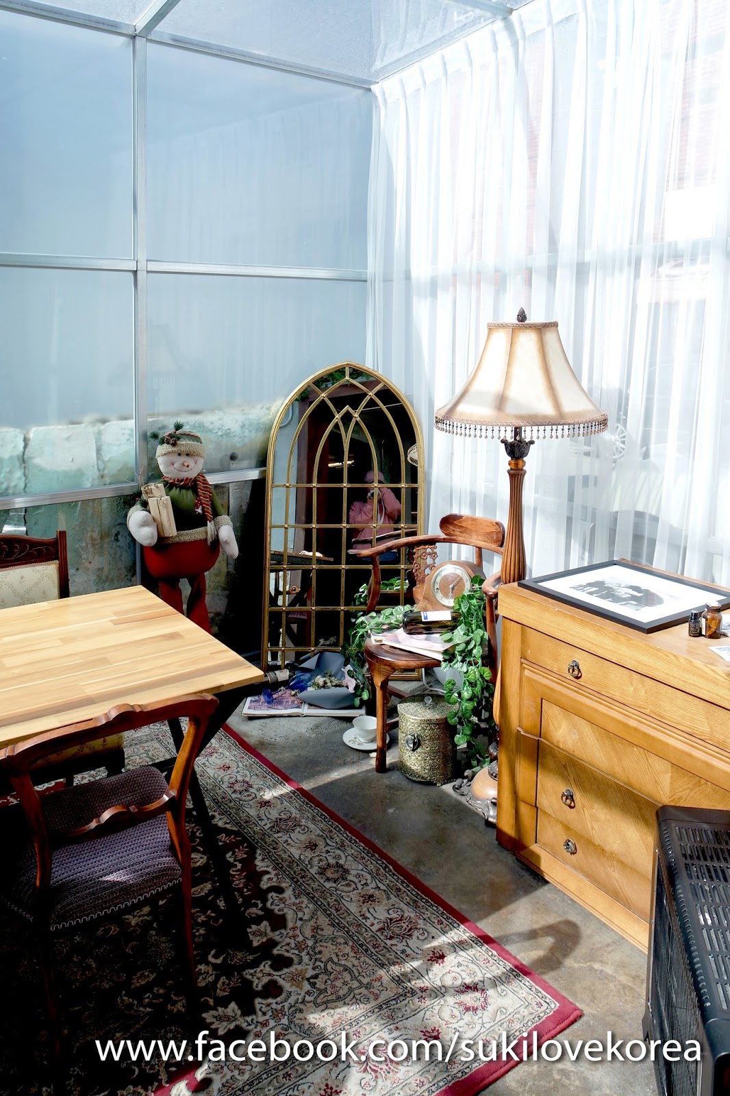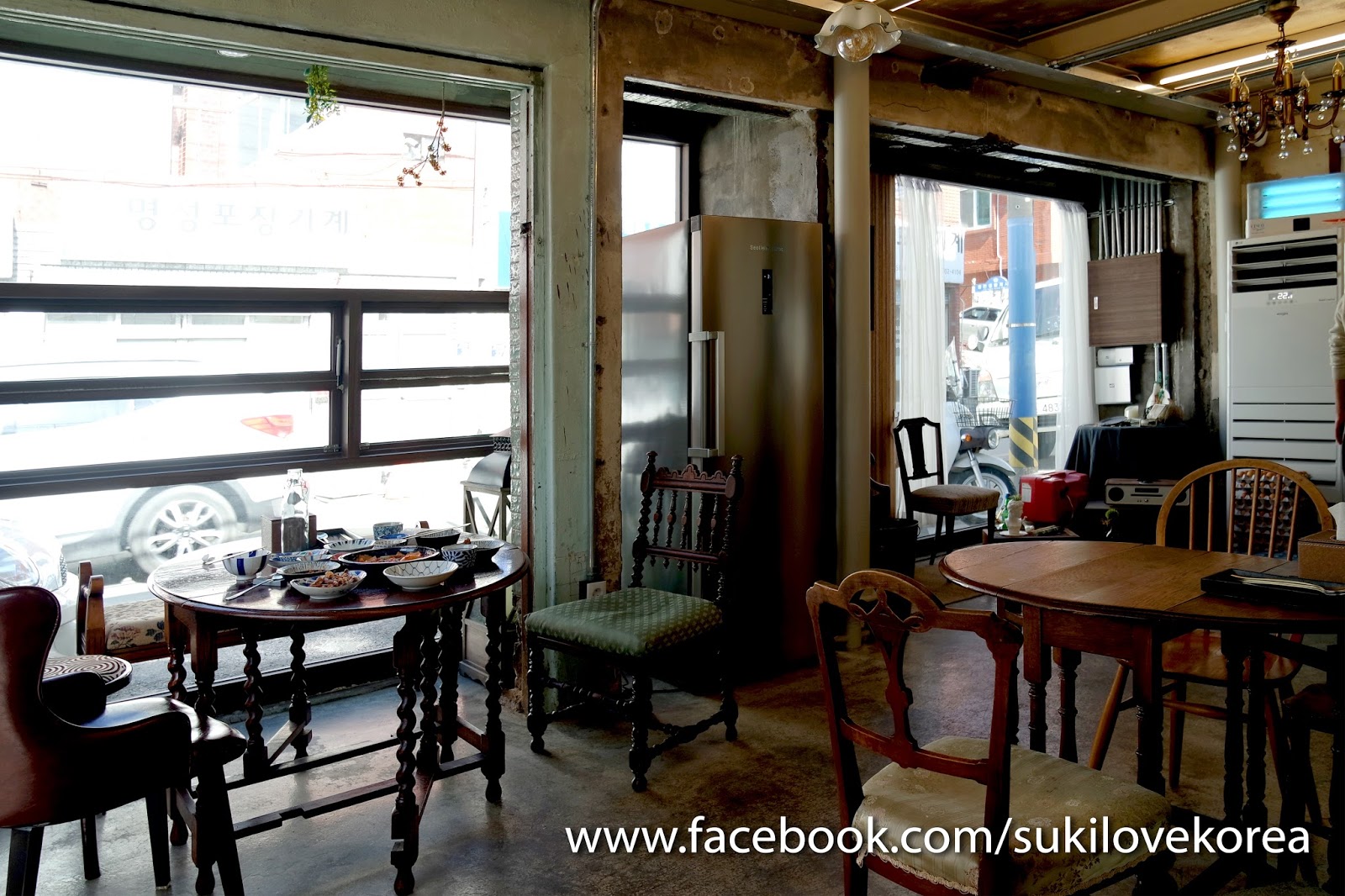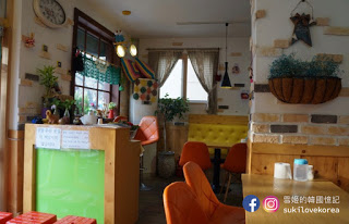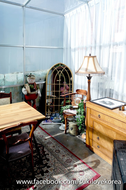 一進去看室的牆壁用上現在流行的水泥設計,整個餐廳內配搭上的懷舊歐陸村風的傢具,店中還擺放了很多懷舊小物擺設,加上小店的窗都是大片落地窗,而偏廳是整個以玻璃搭建而成,所以即使當日天氣很冷,但陽光還能自然透入室,令整個環境變得更溫暖!等上菜沒事做,最好就是學韓妹們在店每個角落美拍一翻!