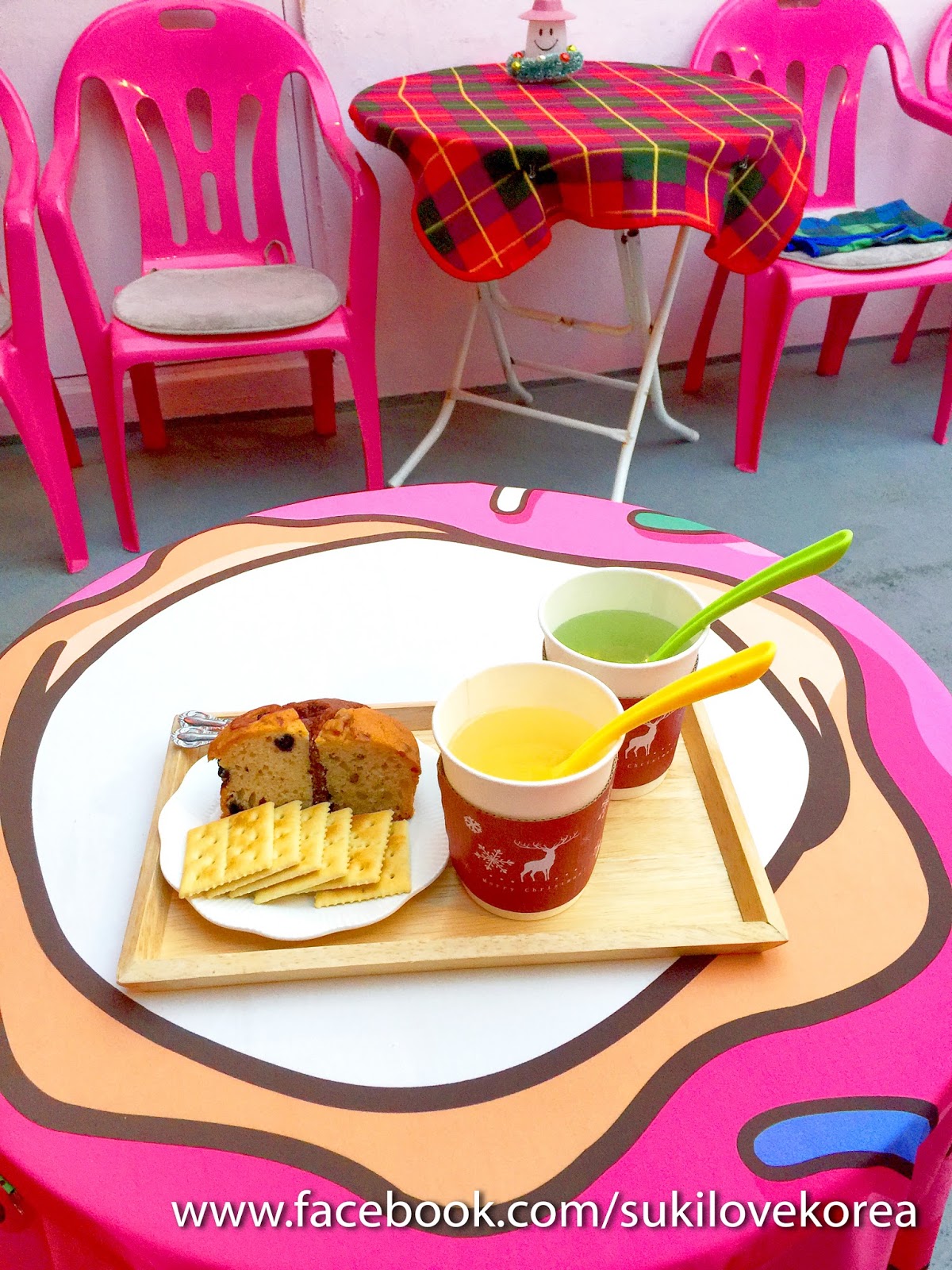 刷乾淨便可進入室內繼續喝咖啡聊天,室內範圍有兩個不同風格的空間,一間是依舊粉紅可愛風,