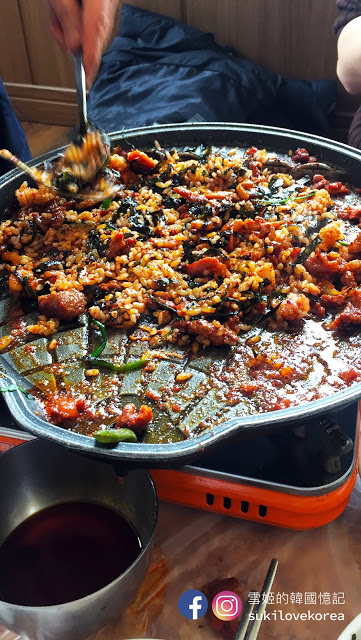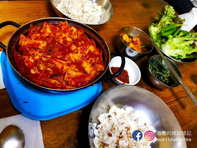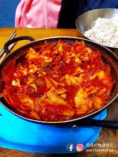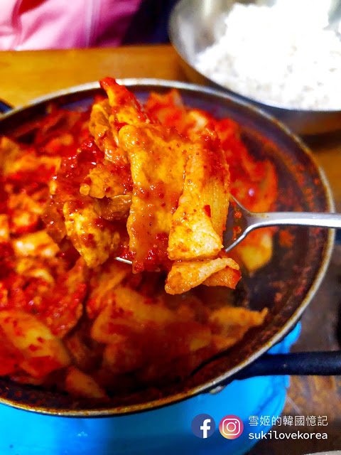快泡菜鍋便來了, 一大鍋鮮紅色沒有湯的泡菜鍋, 古早味就是把泡菜汁煮到「杰」, 然後讓肉及魚完全吸收了泡菜的味道。 整個鍋的味道非常濃烈, 有些人可能會接受不到, 但雪姬就覺得很偷飯, 雪姬一向都不愛吃米飯, 但一瞬間大大碗飯便吃光了。