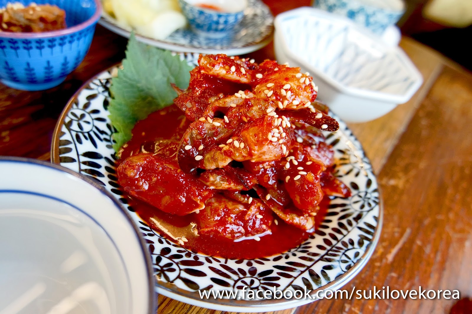 根據韓國SNS網絡上所的,這餐廳的食物質素和味道對不差,而且用料都非常新鮮,應該我們吃完後,所以對是CP超高。網友都極力推介大家要嘗一下他們的醬油蟹、辣醬蟹和醬油蝦,雖然是小店家庭式的味道,但這是不輸給專門吃醬油蟹店的質素啊!所以當日我們就點了兩個餐和一個小吃,第一個就是辣醬蟹套餐。。。原本其實是想點醬油蟹,但那天朋友跟店員溝通錯亂了,最後點錯了辣醬蟹,當日雪已經開始病入膏肓。。。思想和反應都慢了半拍,到朋友點了菜,食物快送來前,雪才突然回想和發現朋友點錯菜了!hahhaaaa…但為時已晚食物已送到了,唯有照著吃吧!