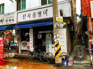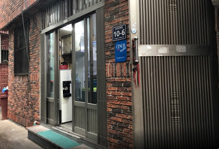 然後巷內看到別人家「합천식당 돼지국밥 전문점」的招牌, 招牌的下方鐵門街號10-6便是了!