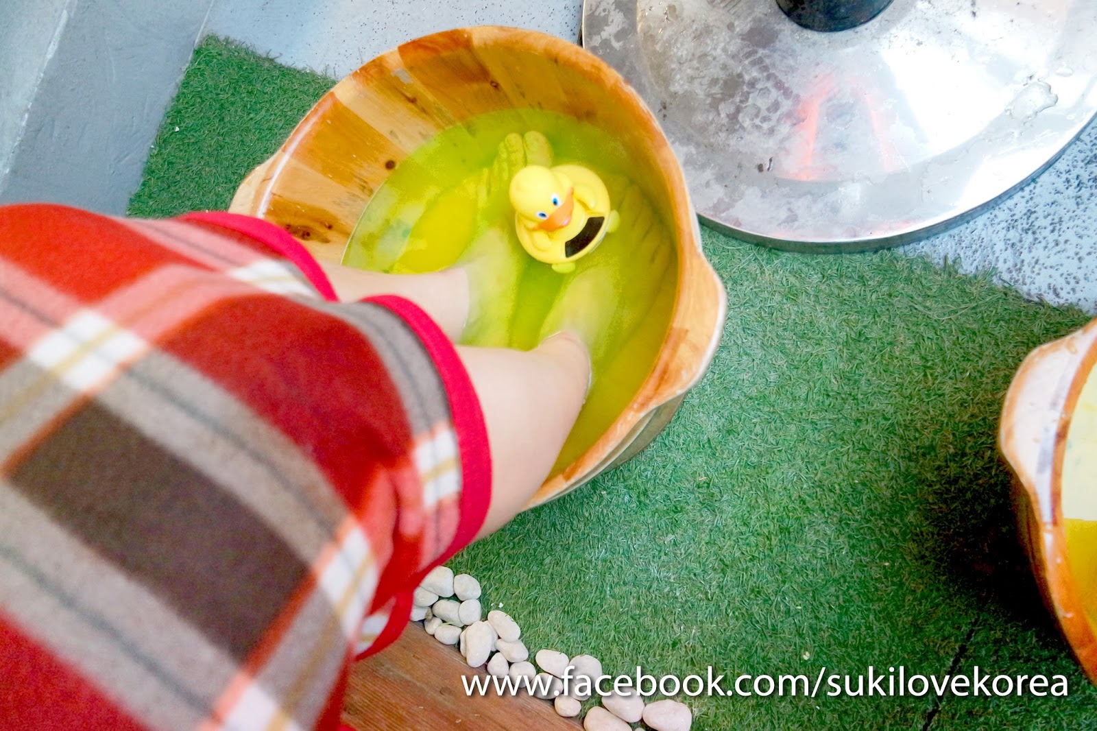 兩種足浴劑都是鮮黃色的,我們的腳和 動物造形的計時器一同浮浸在木桶中感覺簡直是可愛少女心爆燈了! 雪姬不停跟朋友說。。。shit 這可不是雪姬的style啊,雖然是我帶她來,但別誤會我絕不是可愛系的!hahahaaaa