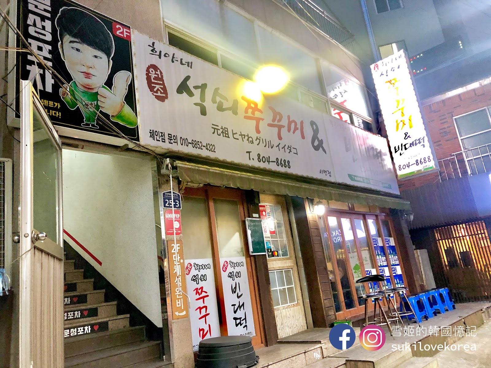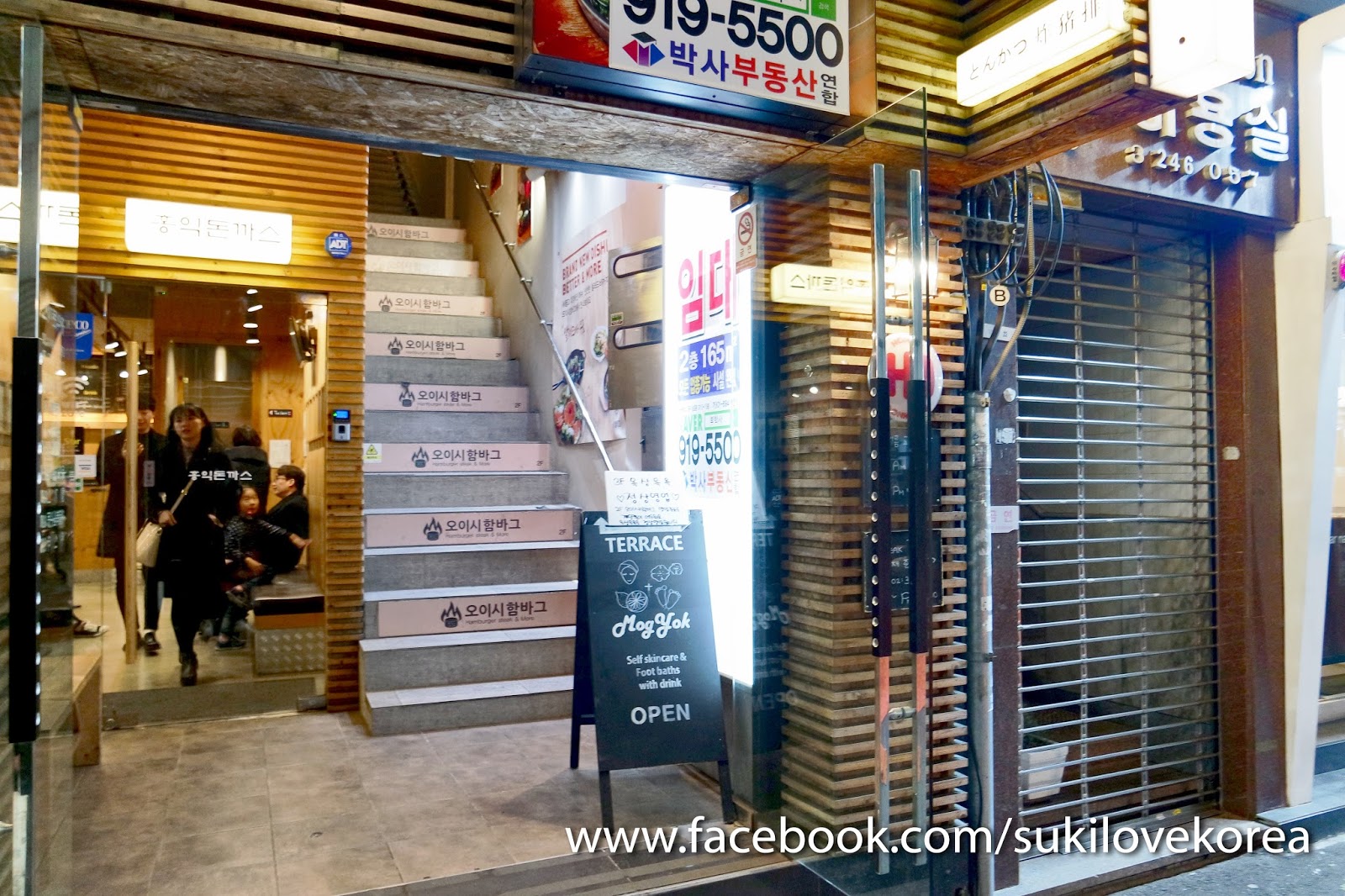 這店所在的建築物1層是一家很多韓國人來光顧的炸豬排店,而我們介紹的足浴咖啡店就需經這食店正門旁的樓梯上到3層,