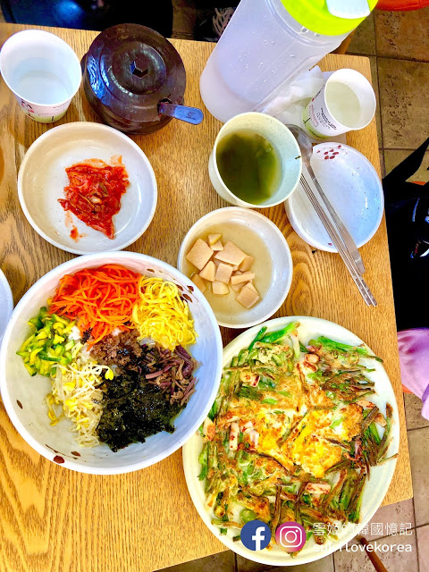 去釜山必定會去鎮海賞櫻花,但一整天在那裡難道只能吃小吃攤嗎?當然不是啦, 這次要介紹的是在余佐川浪漫橋旁邊就有一間可愛韓食小店, 家庭式經營的小店,風味都非常家庭式,人們來這裡都搶著要坐在唯一的窗口位上, 因為可以一邊欣賞櫻花橋浪漫美景, 一邊吃飯, 他們的必點美食就是海鮮蔥餅, 蔥餅不會太油, 煎得厚薄適中, 外面薄脆青蔥爽口, 沾上一點醬油吃味道超讚的, 多點一個拌飯來配煎餅吃既飽肚又滿足,下年賞櫻到鎮海就有好選擇了!