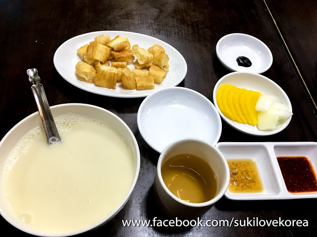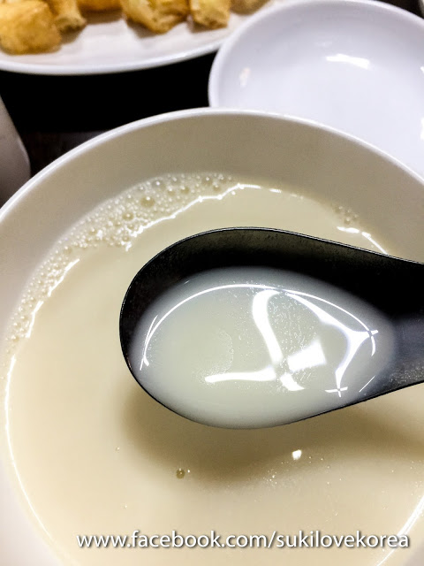 還附上切件了的油條(油炸鬼),熱熱的一大碗,油條比較小和瘦,香港吃到的都是肥肥的,而這裡是偏硬實一點,鹹鹹的油條加清淡的豆漿,