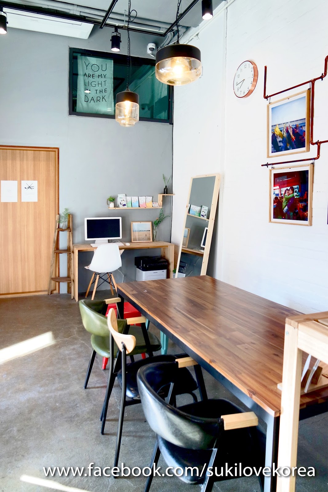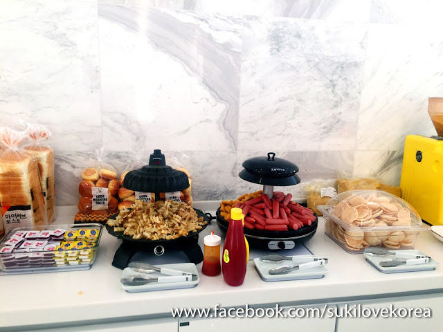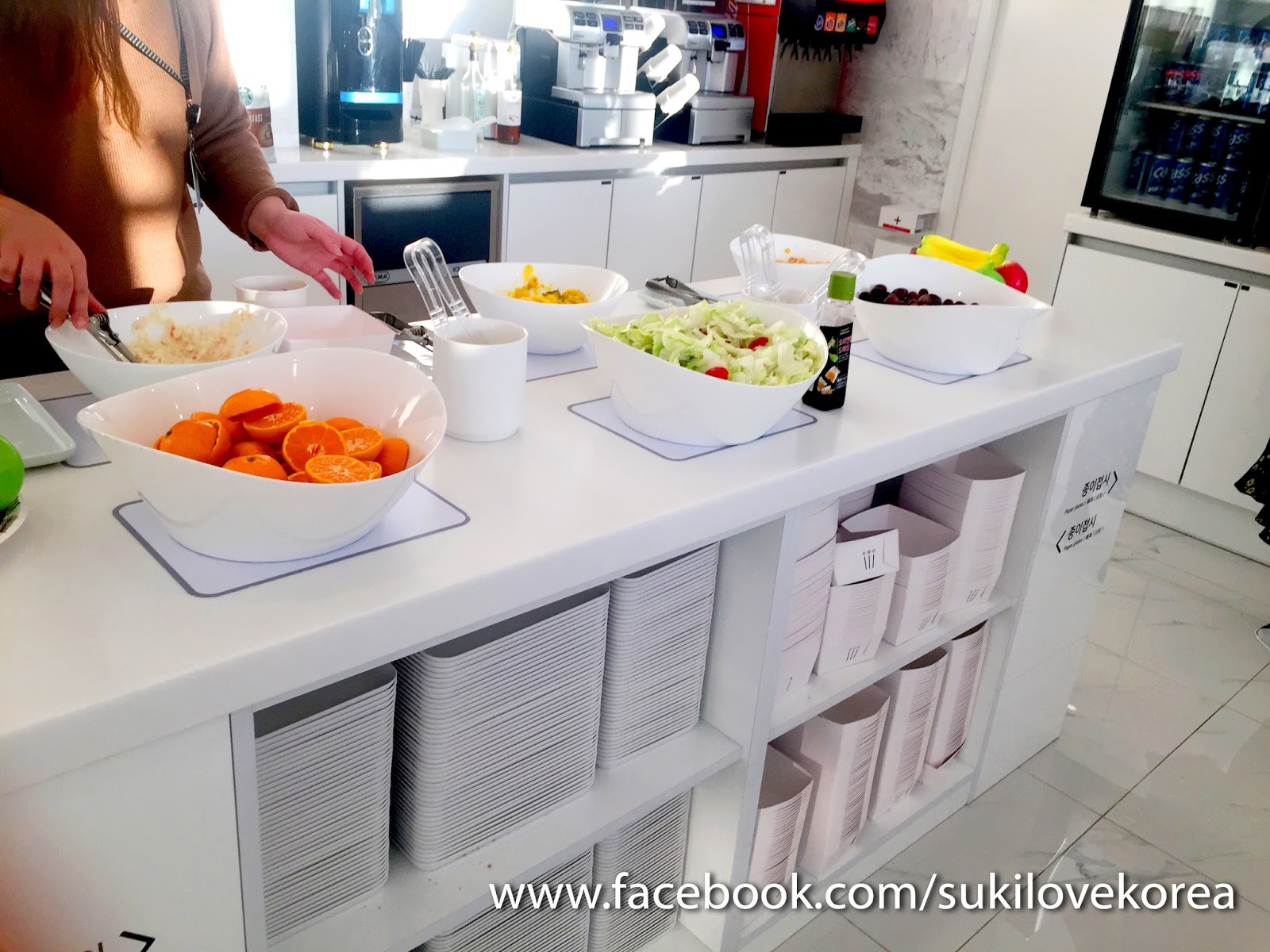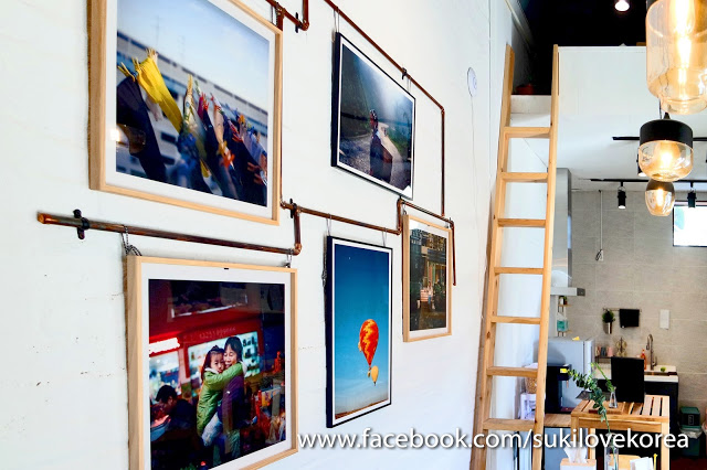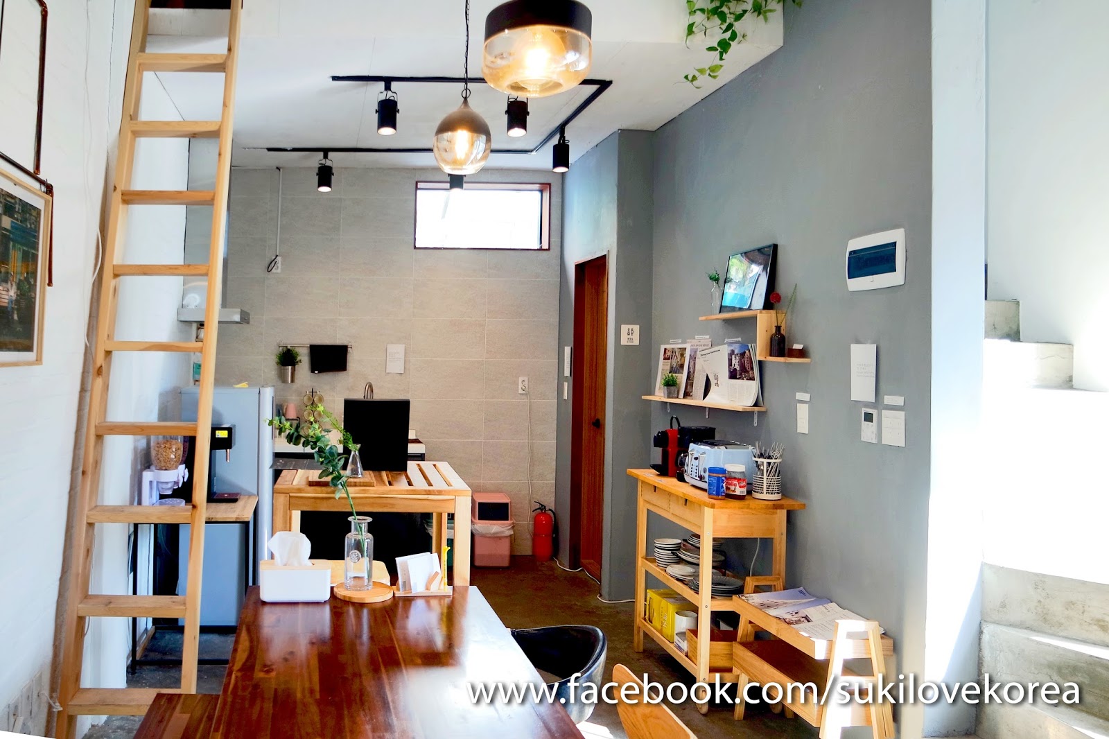 先來介紹一下1-2層的特式咖啡店吧!這裡的賣點是無敵廣安大橋海景,中午11時開始營業至零晨1時(周末零晨3點),不論是房客或是只用咖啡店的客人只要付9000won入場費,就可以在店內自由的享受4小時,這裡沒有店員為你倒咖啡捧食物,有的是一個設在1層的自助餐飲區,入場費以包含了使用自助餐飲區的費用,客人可以自行在這裡拿你想吃想喝的,食物方面都是一些普通的零食或小點心三明治之類,飲料方面,剛是一般的汽水果汁,另外亦有提供星巴克咖啡豆,客人可自行做咖啡來喝,