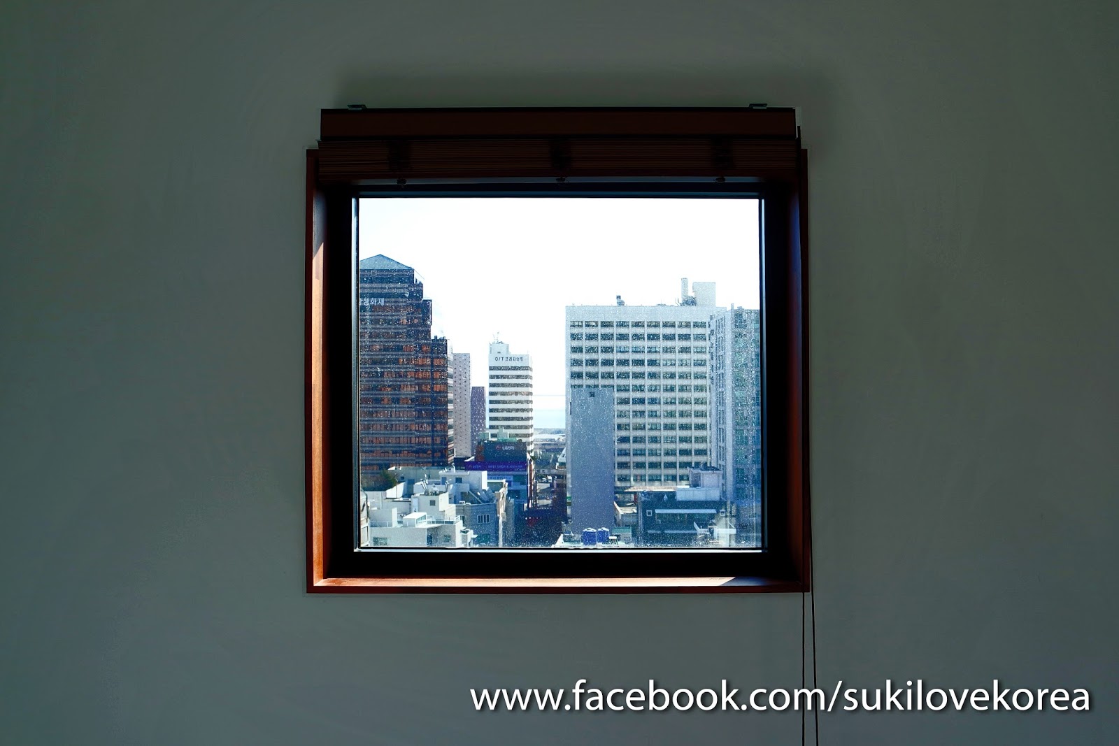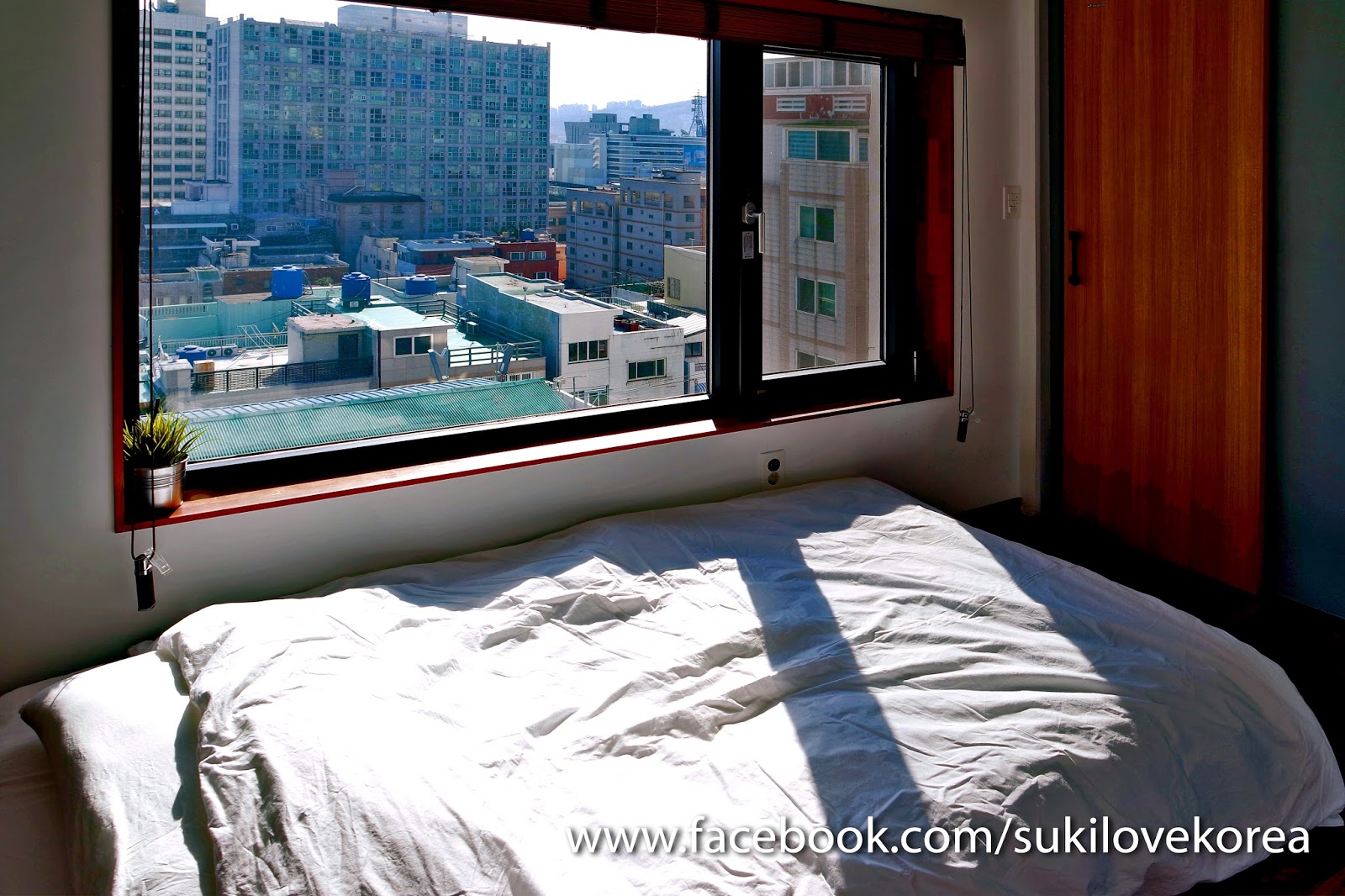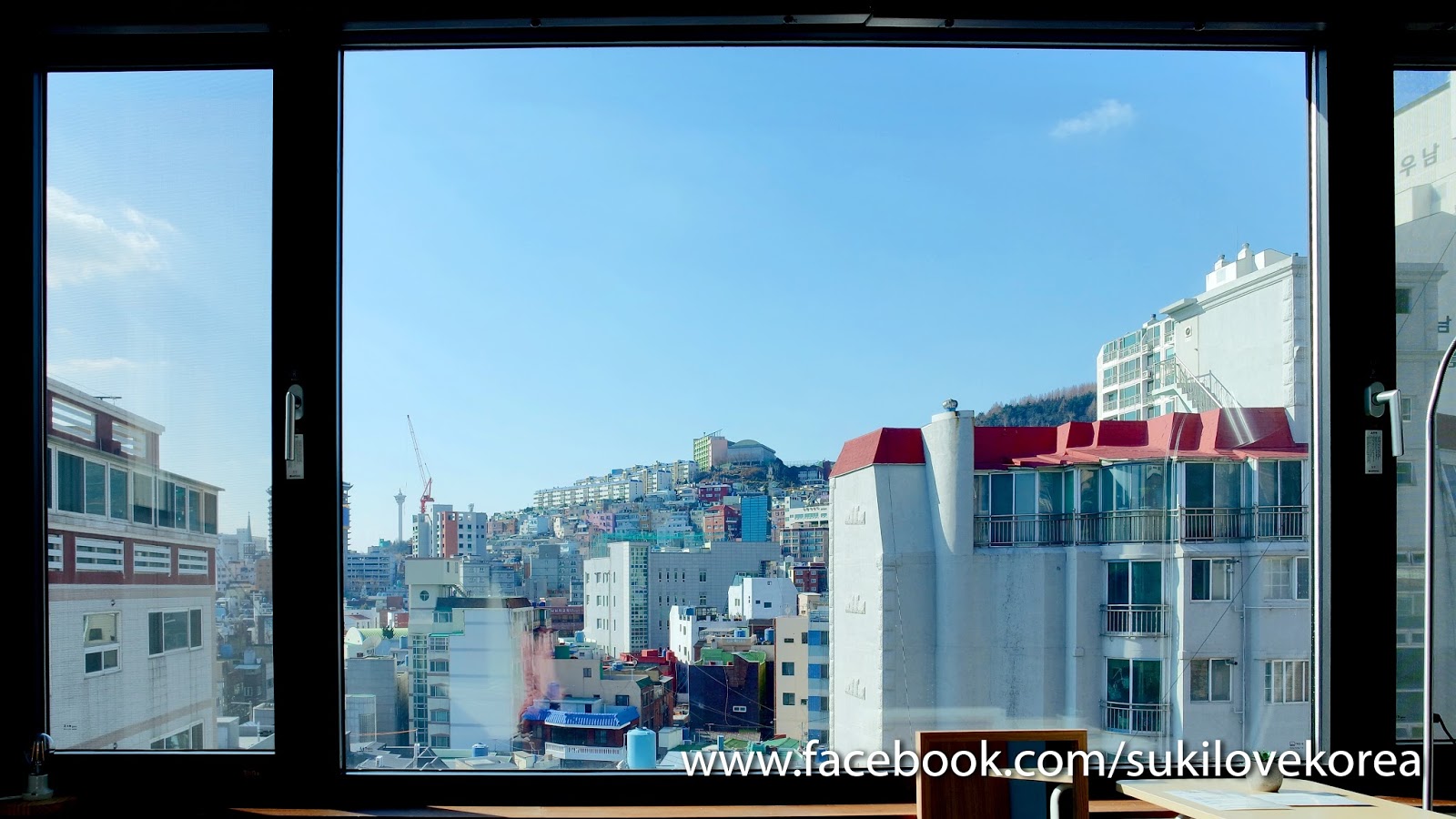房間的特大窗戶能遠眺釜山龍頭山的釜山塔美景和韓國特有的山上彩色小房子,躺在床上能浪漫的恩賞夕陽西下的釜山塔景觀+必備的大大片一望無制的天空,