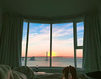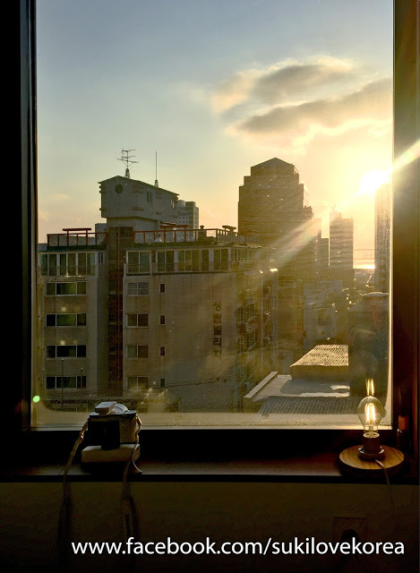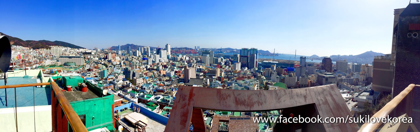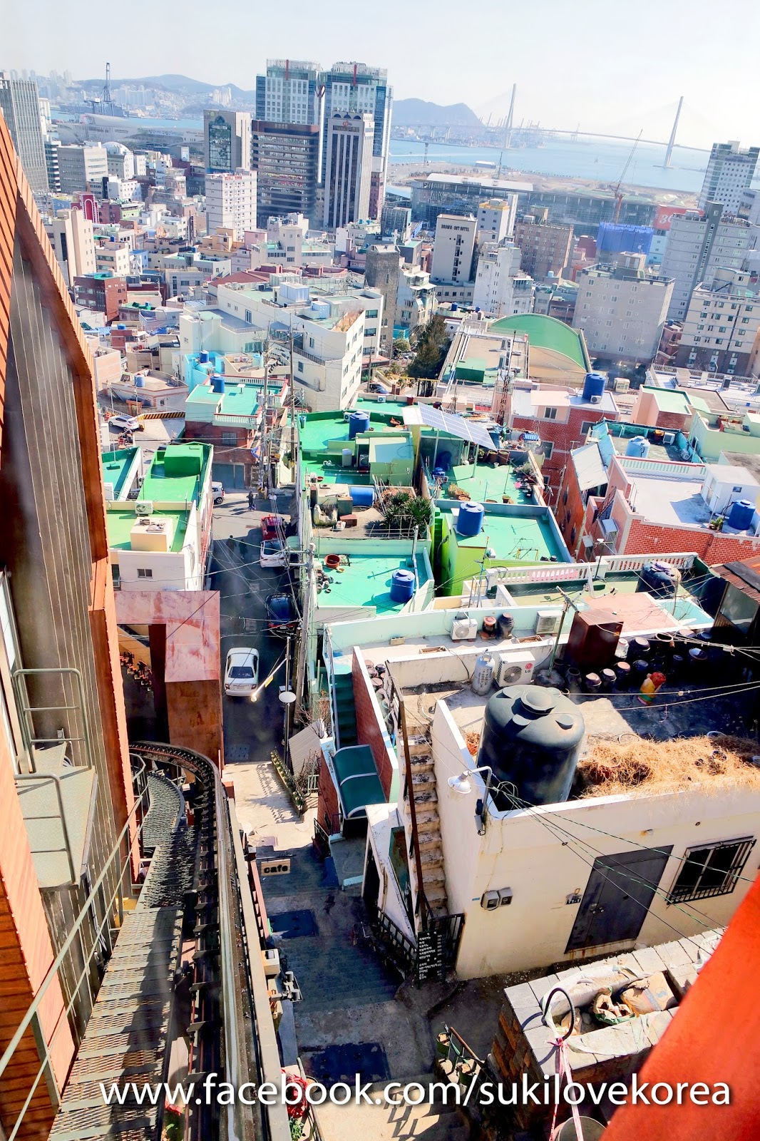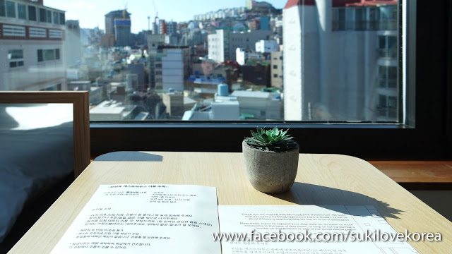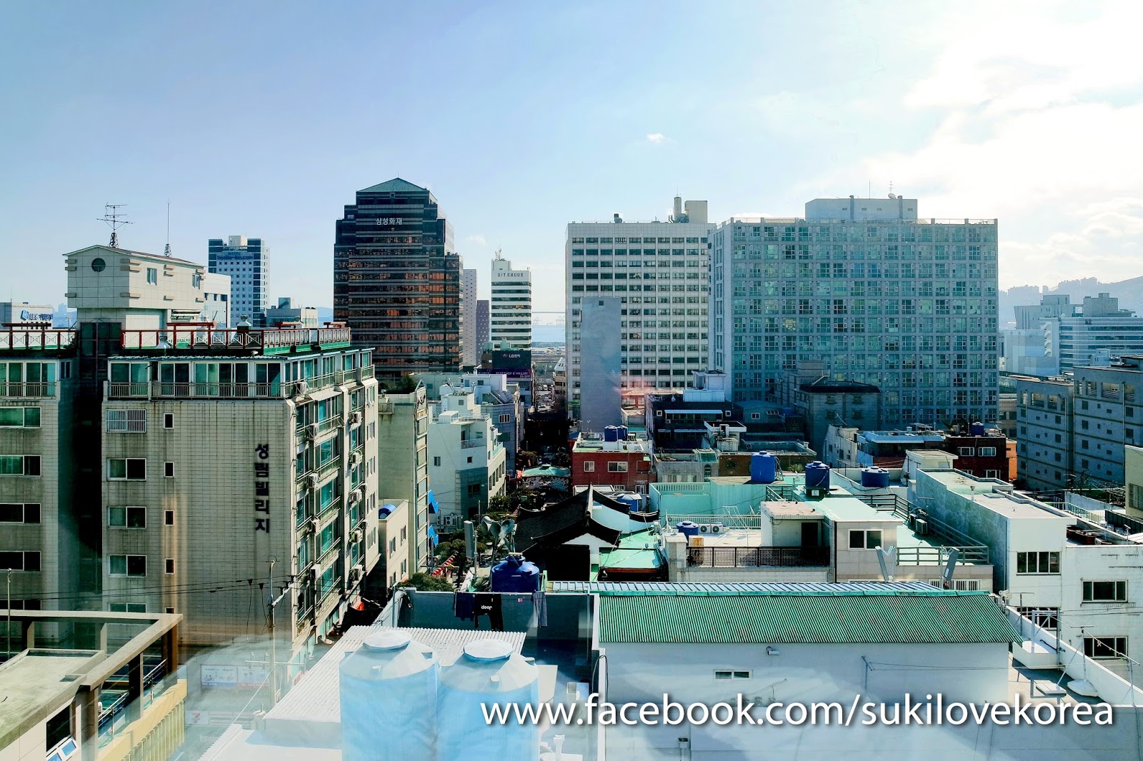房間的特大窗戶能遠眺釜山龍頭山的釜山塔美景和韓國特有的山上彩色小房子,躺在床上能浪漫的恩賞夕陽西下的釜山塔景觀+必備的大大片一望無制的天空,
