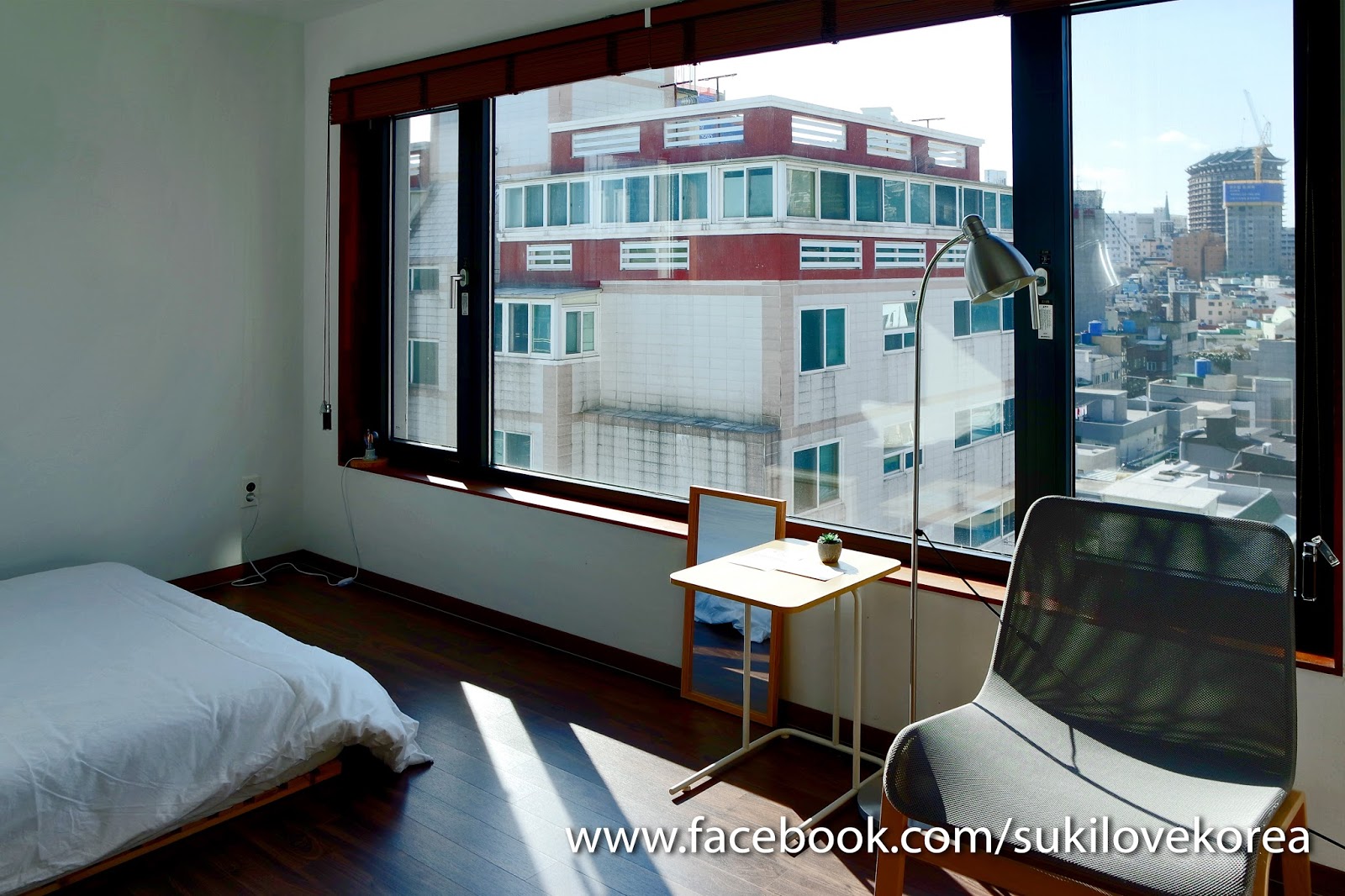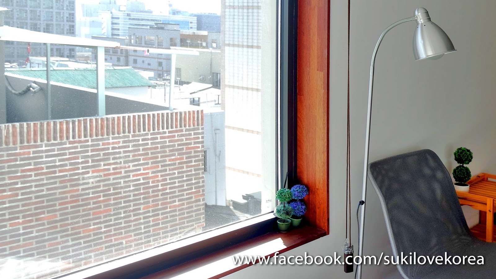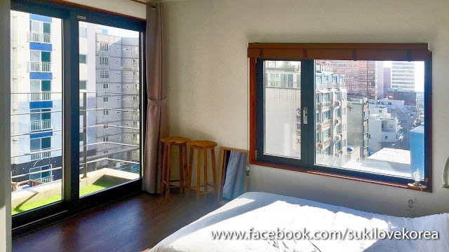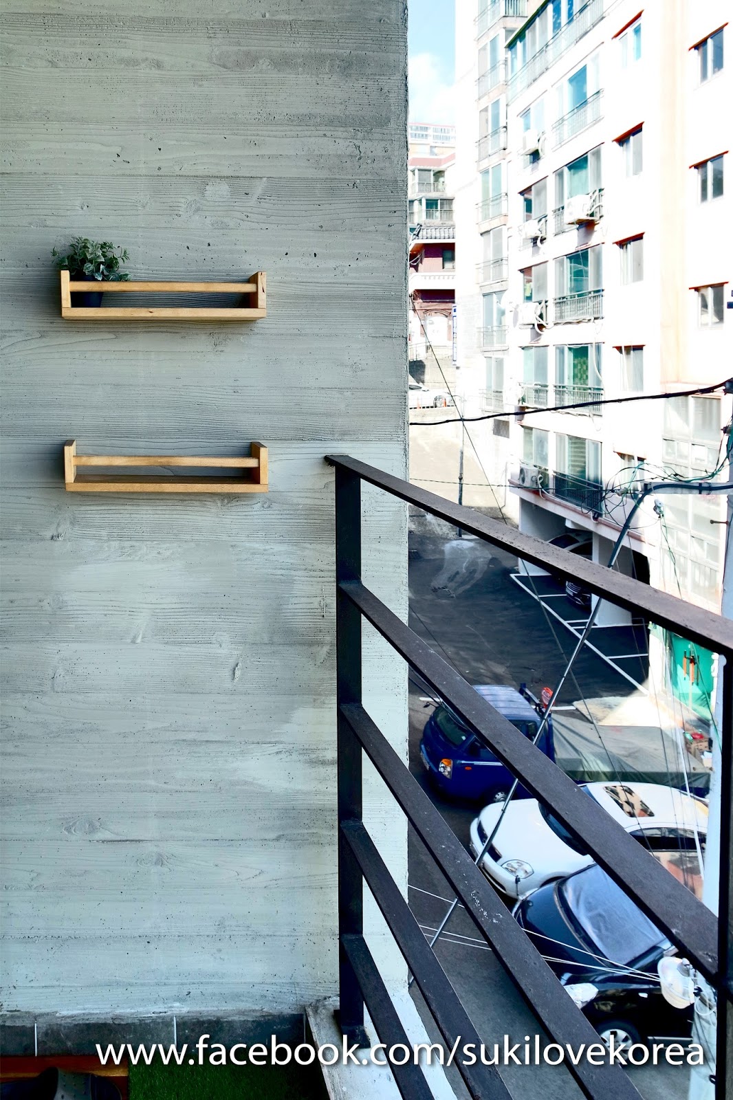 可知在韓國大部份的陽台都是屬於功能性的,很少會有純用以欣賞景觀而建的陽台設計,故此民宿老闆刻意在建造這個建築物時要求用上隔熱保溫功能超強的玻璃窗,好讓室內的溫度不會受景觀陽台的影響,這就可見民宿老闆的用心和設計!