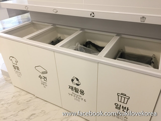 一進門便有4個大大的分類回收箱,要掉的垃圾都要拿來這裡扔!