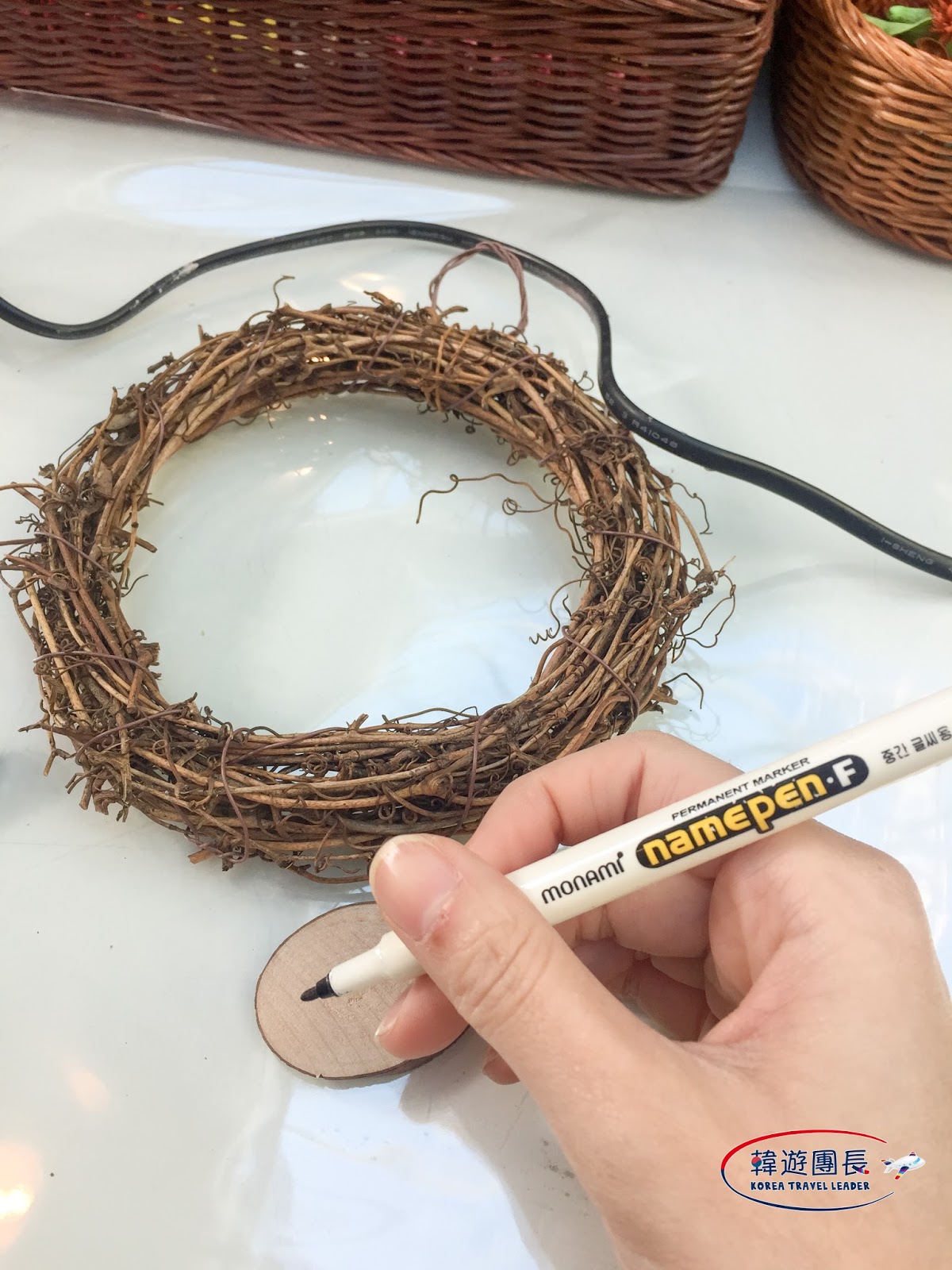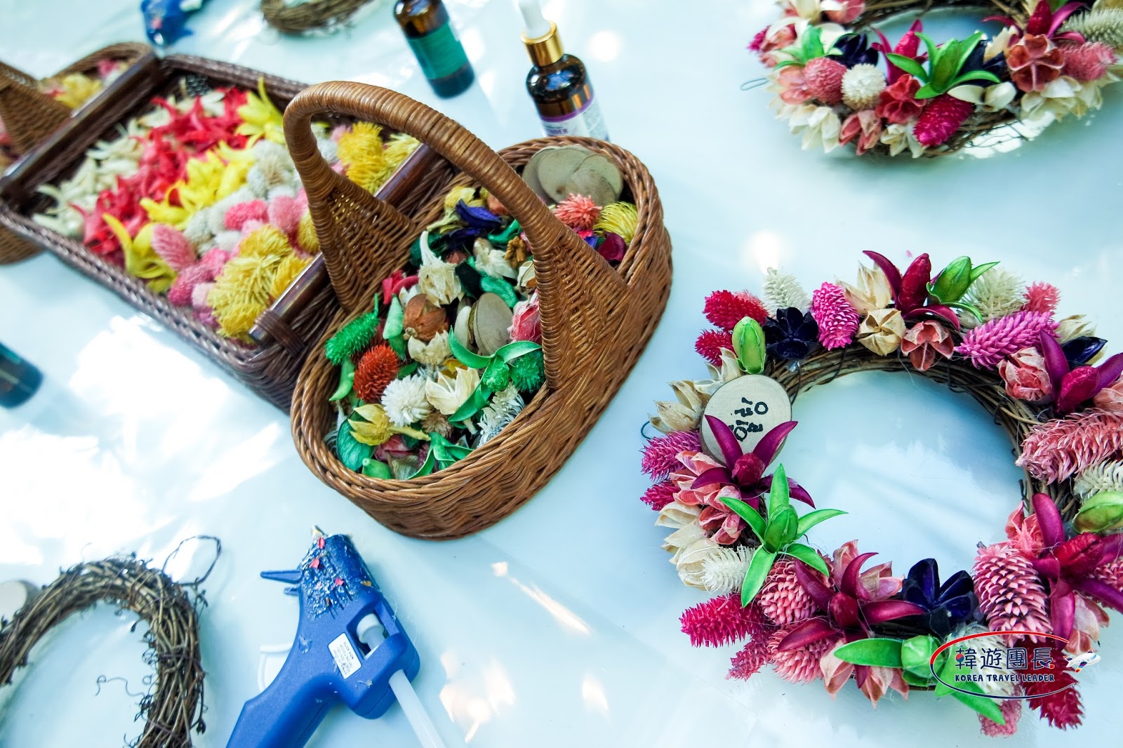 大家完成的花環都很漂亮很滿意!花環手作班是3萬won/60分鐘,大家在等入黑前可以考慮一下啊!
