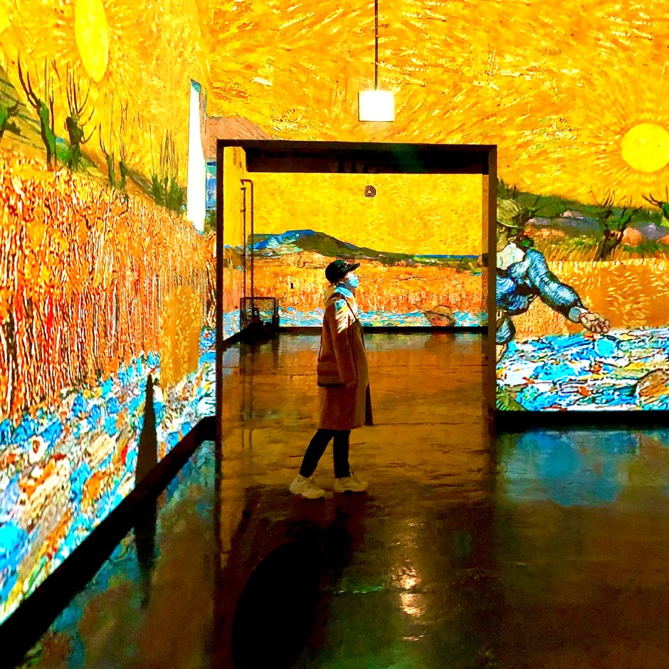 夏天在濟州島到處趴趴走,長時間暴曬於太陽底下,最渴望的是進去一個有涼涼空調的地方,逛一下抖涼一下吧!雪姬推薦大家來個震攏人心的藝術之旅吧!這個展館會不定時上映一些衛大藝術家的光影藝術展,上映的震撼又美麗又具深度的效果,即使你不懂藝術,也會被動容!這裡整天都開放著涼涼的空調,參觀者可以在展場內找個有利位置隨地坐下,體驗著震撼人心的藝術,享受著涼快的空調,何其舒適又有品味!