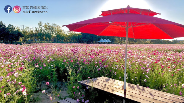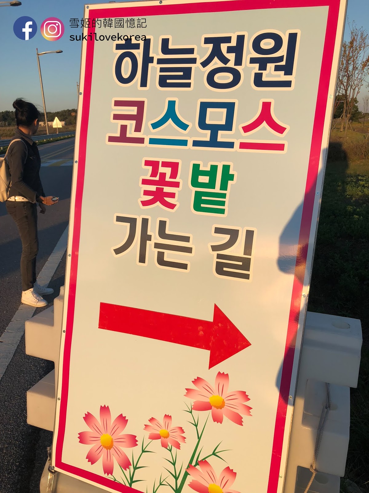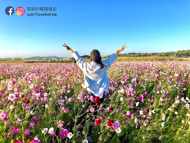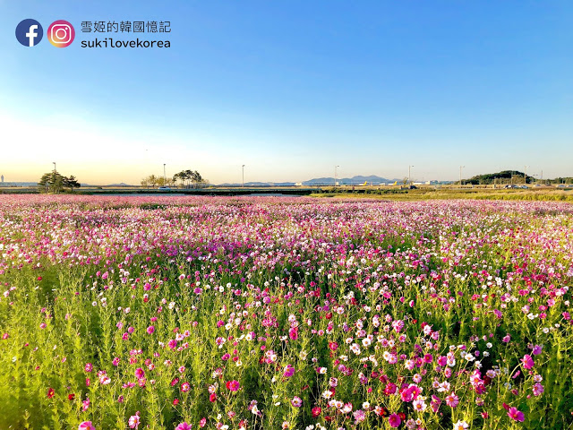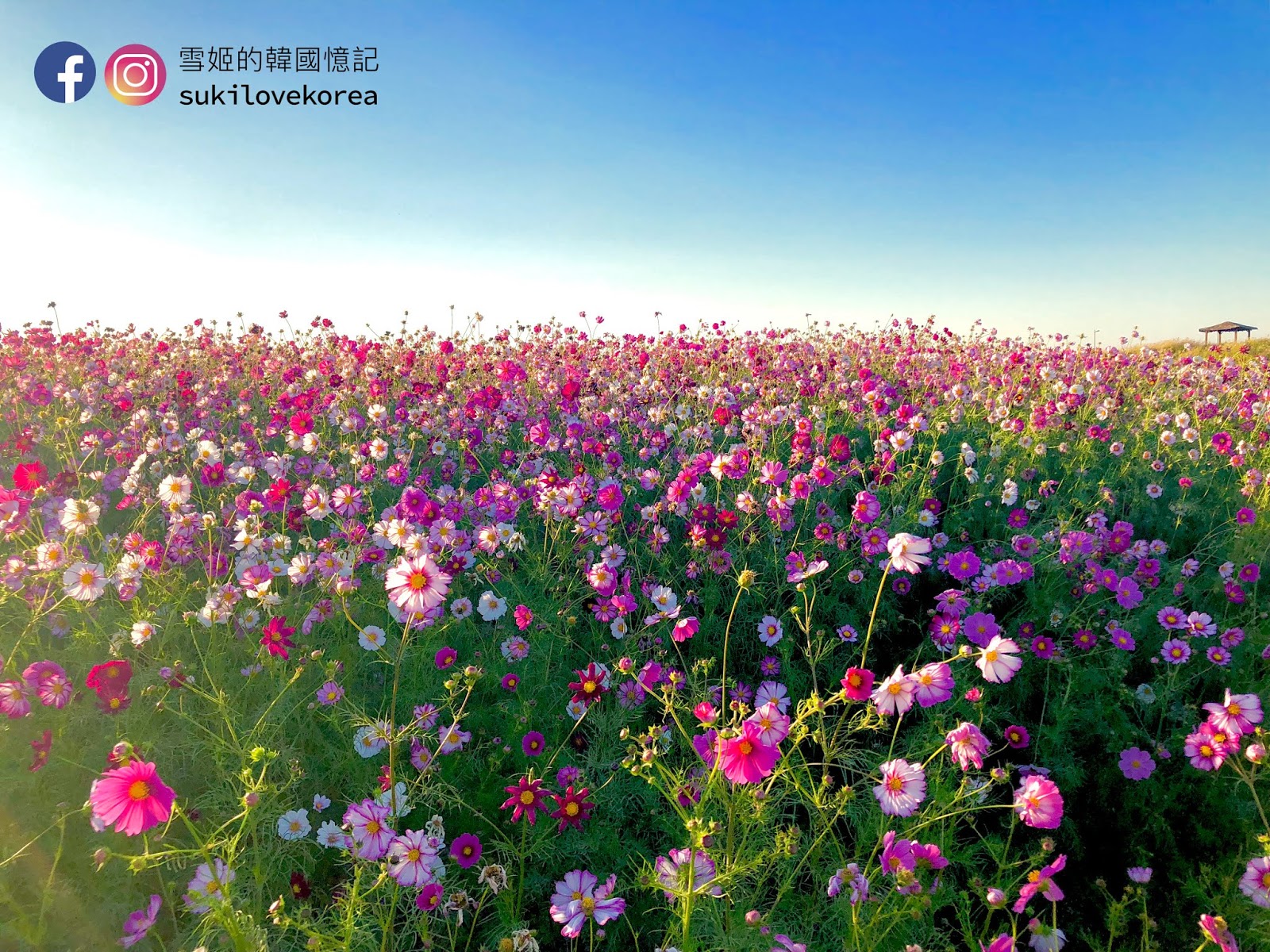 雖然這裡的波斯菊花海只有粉紅色而已,但大家不用失望除了花海外,花海旁邊還有一大片紫芒田啊!絕對可以讓大家瘋狂打卡一翻才回國或正式開始遊韓之旅。