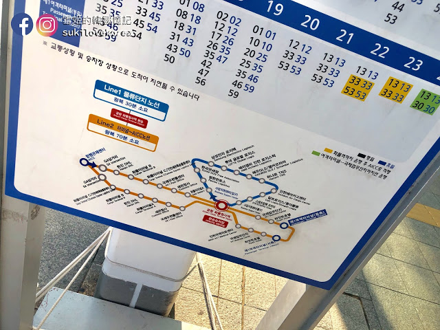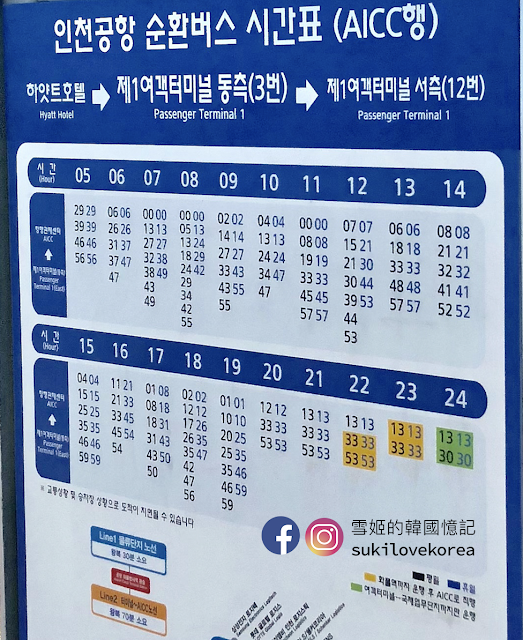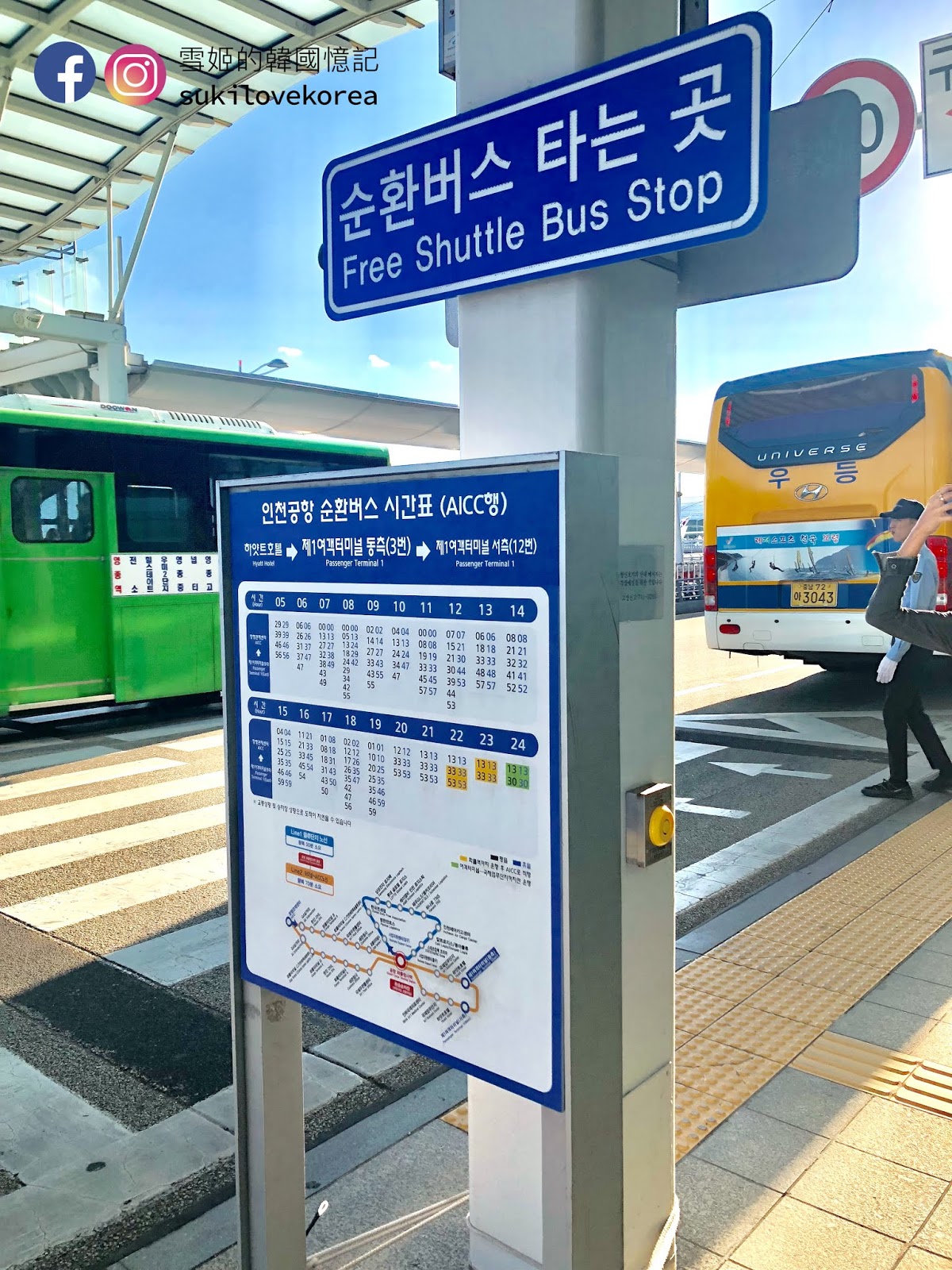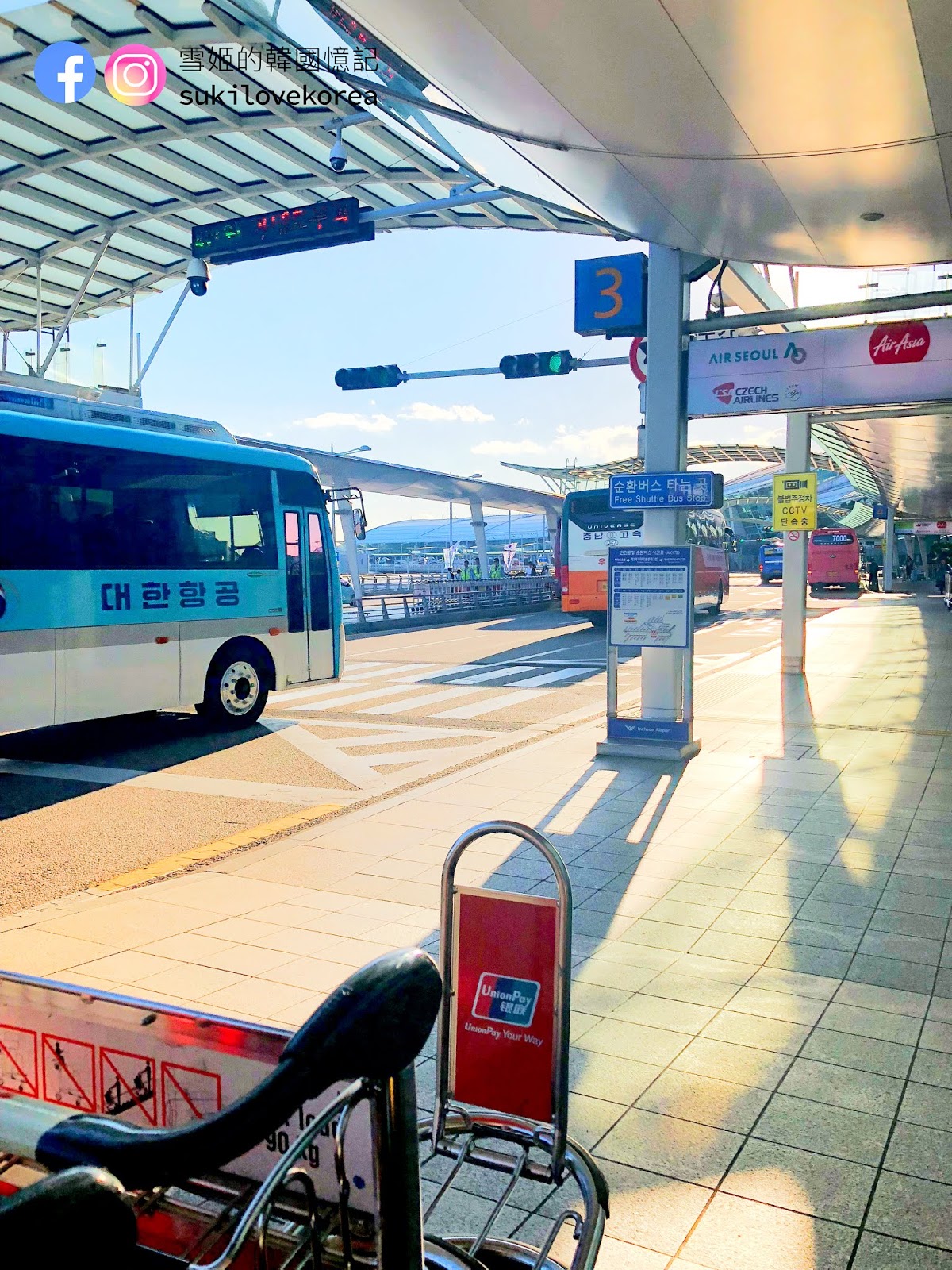 去天空庭院的方法非常簡單,大家先在仁川機場儲存好行李(不建議帶同行李,因為天空庭院是戶外而且都是高低不平的草地泥地,亦沒有地方置放行李,所以絕對不適合拖著行李來!),然後在仁川國際機場T1 33號出口門便會找到免費機場巴士站,