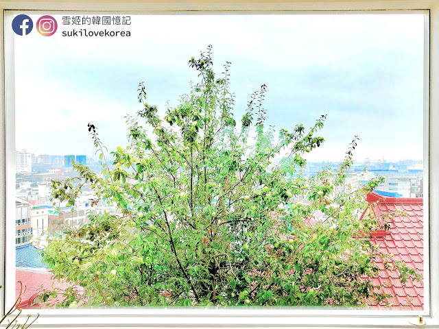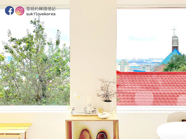 咖啡1層的窗外景緻能看到橘子樹和特式傳統紅磚瓦屋頂並配上仁川海港作背景,是一眾韓妹來到這咖啡店必打卡美拍的位置。