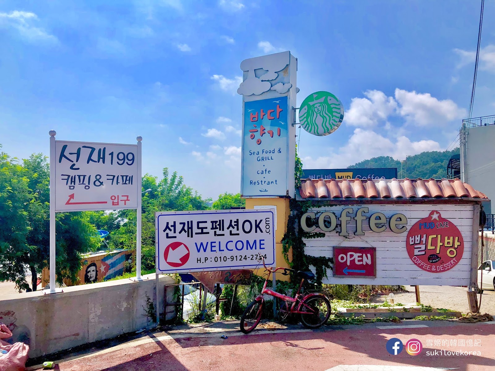 仙才島仙才里這邊有著一條長長的泥灘海灣,早前因為BTS 和《藍色海洋的傳說》的全智賢也來拍攝而略有少許名氣,但最近在韓國SNS網絡瘋狂打卡起上來就是因為一個偽《尹食堂》招牌而引起,這裡其實整體氣昏都是仿效第一季的《尹食堂》,而且開了一段時間,但為什麼反而是今年才爆紅。。。雪姬私心覺得應該是多得第二季才加入的朴敍俊了,哈哈。。。不竟每一個人來這裡打卡都是衝著要跟偽朴敍俊的《尹食堂》招牌合照而來!而這個招牌就理所當然的成為了我們這行程的序幕,現在就讓雪姬來教大家如何好好的玩轉仙才里吧!