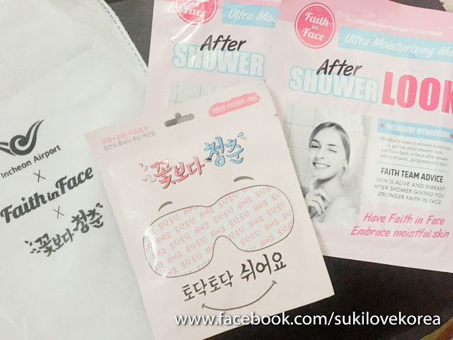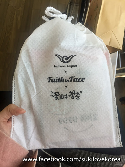 這是雪姬早前從仁川機場飛回香港時,在仁川機場被邀請填寫意見調,填寫完畢後便送了我一份小禮包作感謝,打開小禮包裡原來是faith in face2張面膜和1張眼膜!
