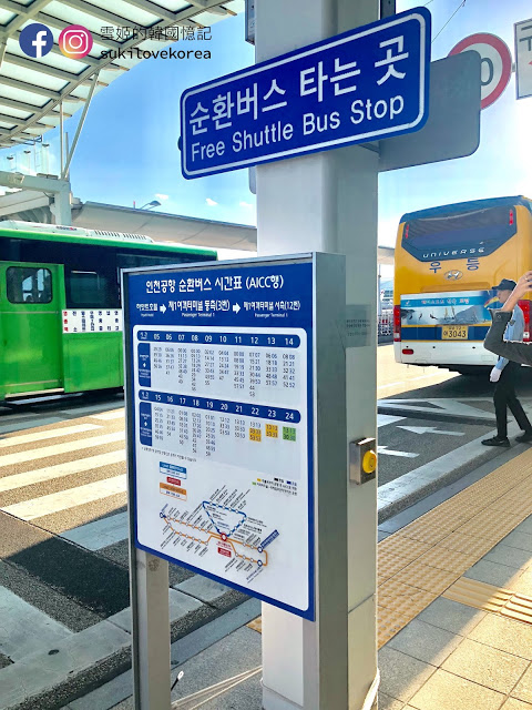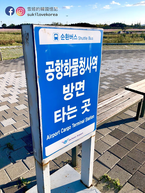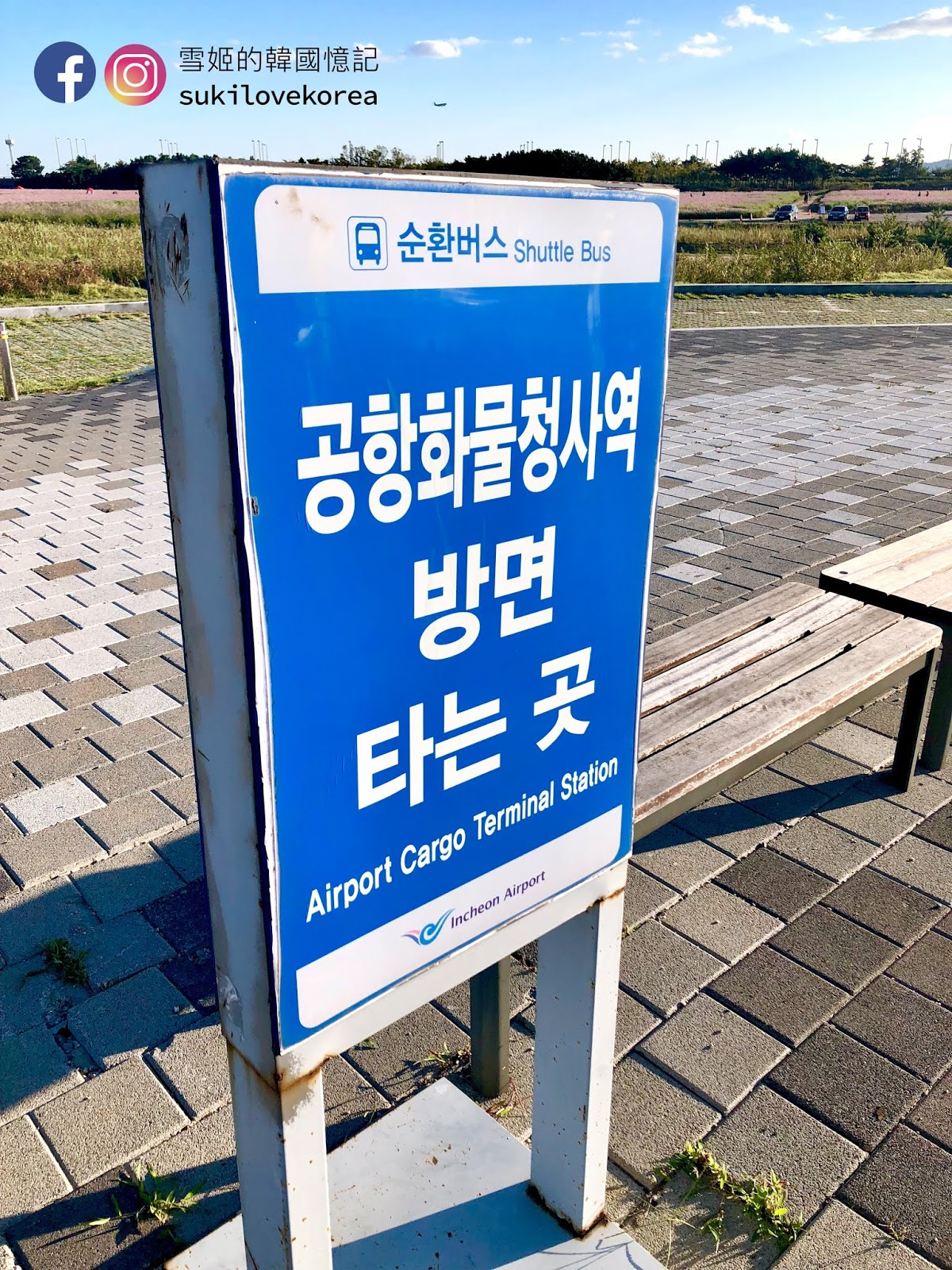 乘印有仁川機場的白色巴士去到坐到 < 공항화물청사역 / airport cargo terminal station >下車便會看到,