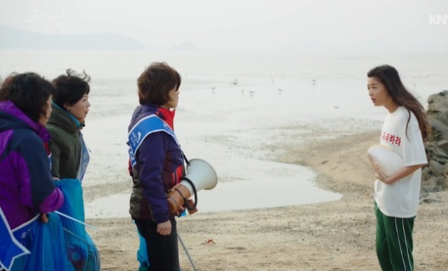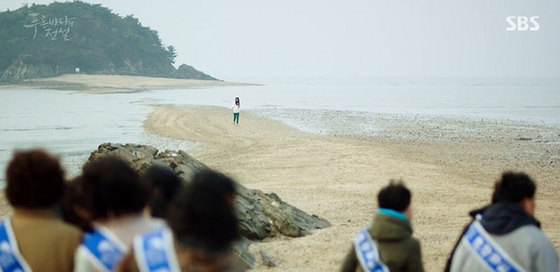 剛才提及的這條小小的沙路亦是一套大家熟悉的韓劇中出現過的場景,這就是《藍色海洋的傳說》,全智賢在這裡拍攝過啊,這是她穿著T恤運動褲拿著大貝殼包包的那幕!以下來到劇照和實景圖供大家參考: