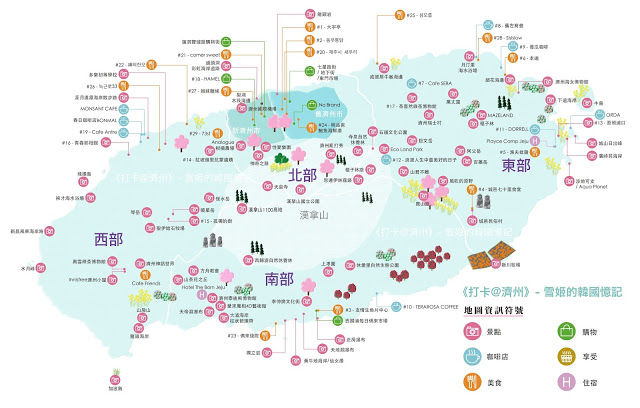 以下濟州地圖已附上濟州遊的基本景點位置,以便大家編排行程時更容易上手: