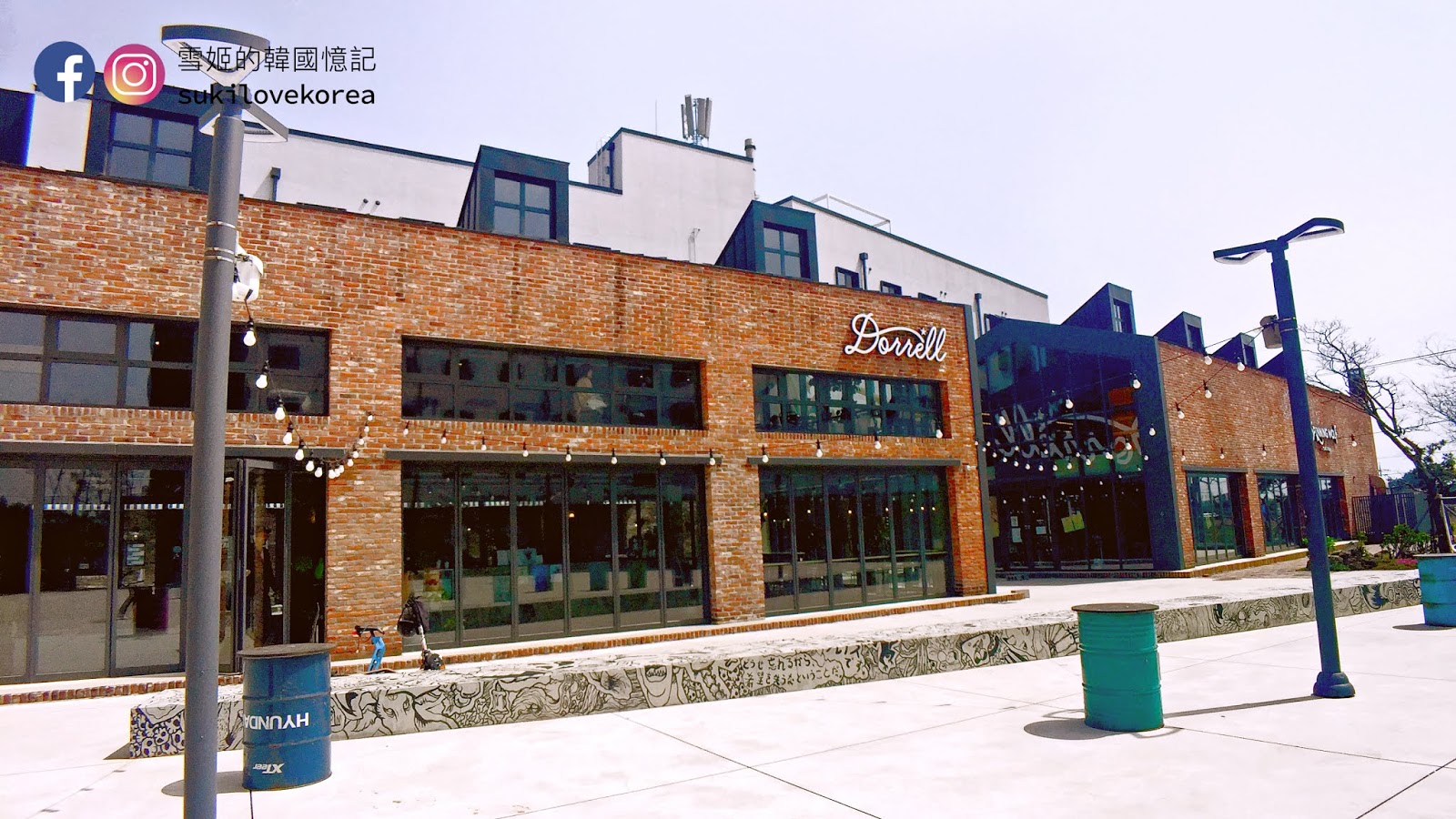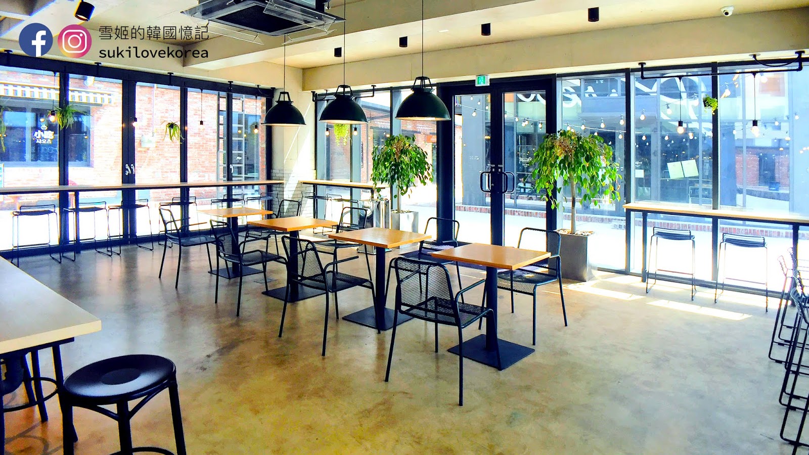 這間咖啡店面積超大,擁有兩層高樓底以紅磚搭建而成的時尚型格房屋中,它置身於一群白色渡假屋的中間,