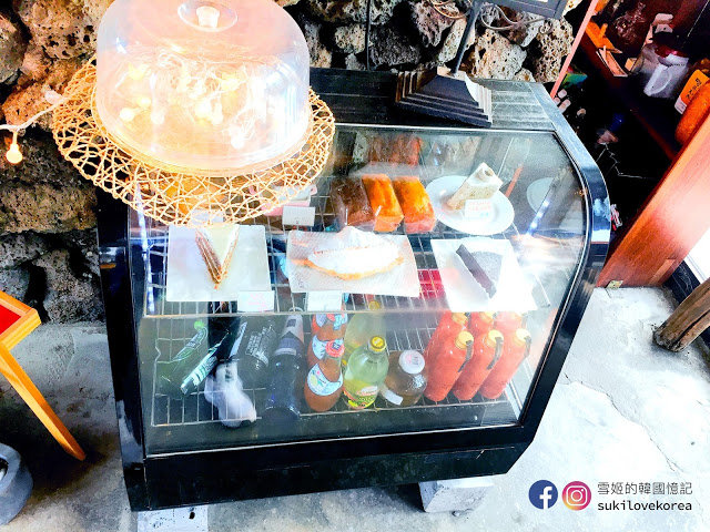 而甜點方面在濟州怎能不吃濟州出名的胡蘿蔔蛋糕,蛋糕內充滿著一絲絲的胡蘿蔔條,口感非常豐富而味道又不會過甜,而且蛋糕伴碟也會弄得美美的,方便大家相機先吃啊!*留意此咖啡店是規定了每位客人必須點一杯飲料!