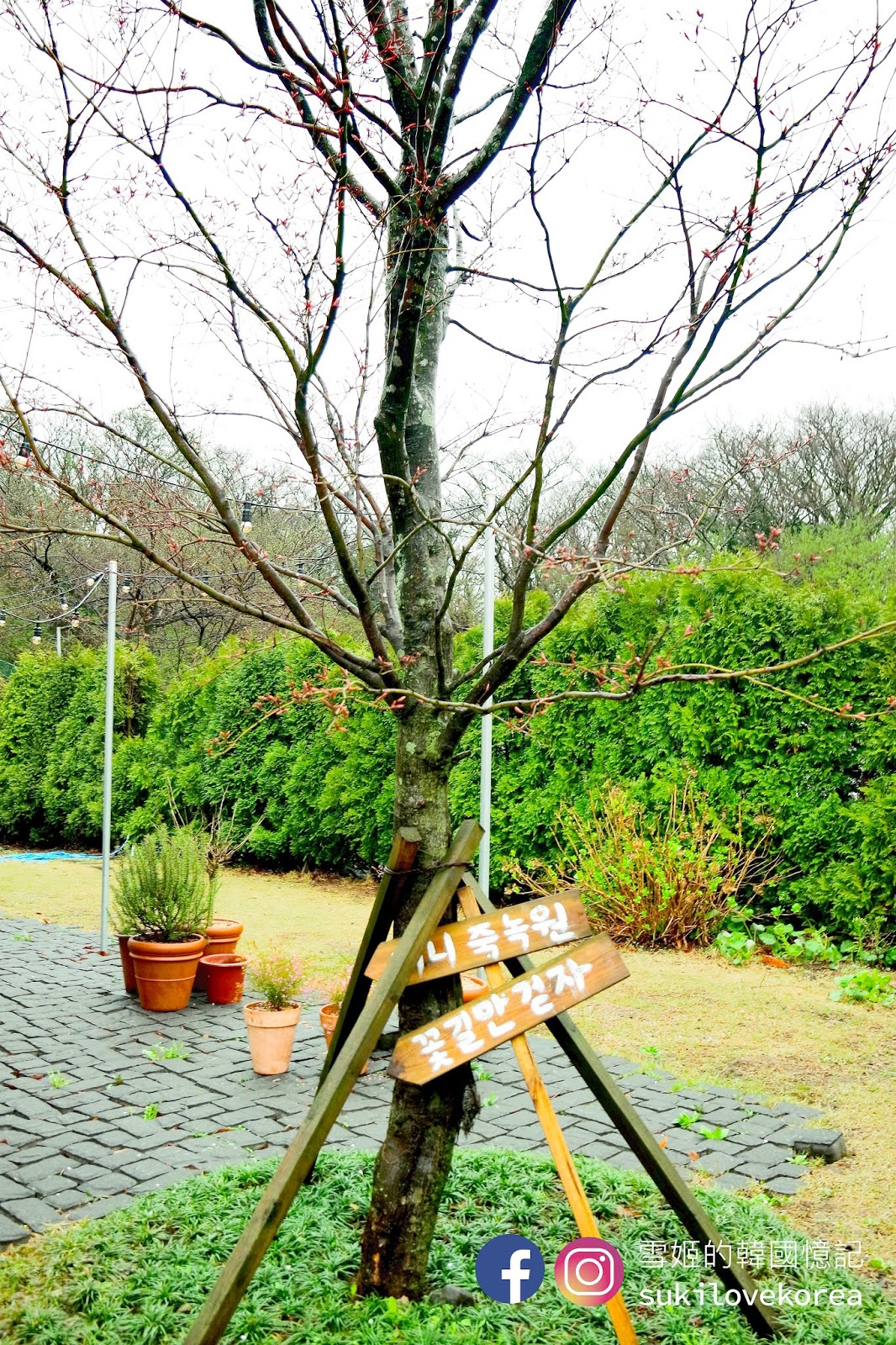 雪姬打算走入樹林時剛巧突然下大雨,咖啡店又沒有開門,所以並沒有走進去便離開了,以下是韓國SNS找到的韓妹們的樹林美拍照,裡面有一個大形的蔷薇畫框,大家可以利用這個擺設來美拍,四季來拍都一絕!
