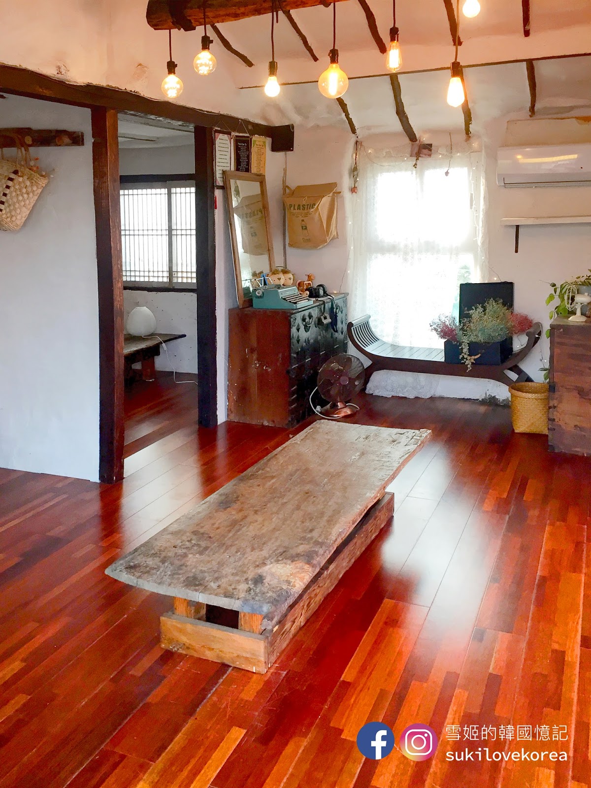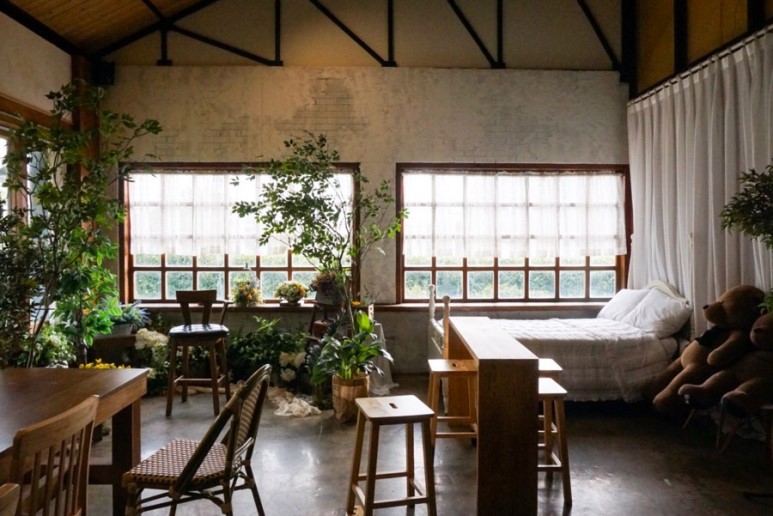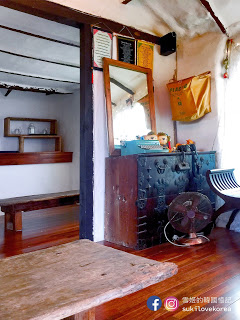 雪姬拍這美照的位置是其中一個室內空間,這裡有著奶奶老家般的舊房子風,週圍擺放著的都是舊木傢具擺設,懷舊復古感十足!