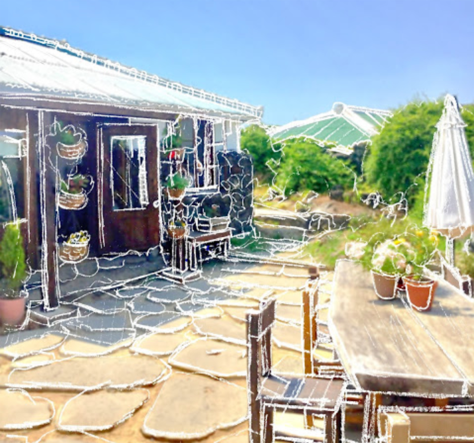 咖啡店除了美食聞名以,這裡亦是韓妹們美拍的咖啡店之一,房子同樣是具濟州特色的火山岩石和木材搭建而成,