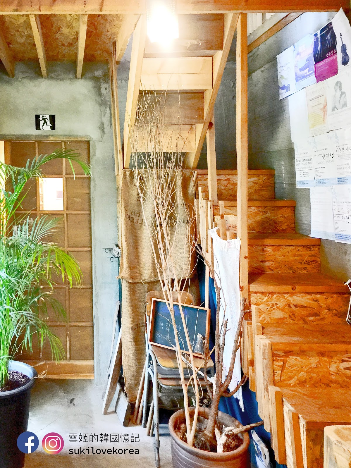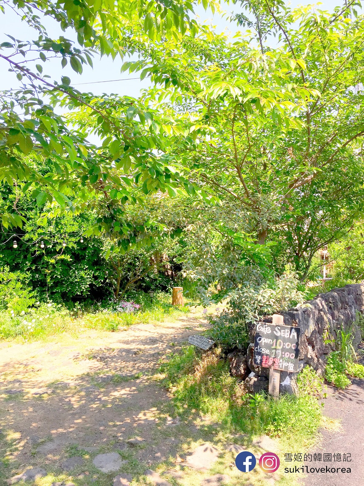 這間美爆的咖啡店位於咸德海水浴場附近,被高高茂密的樹木包圍著,外圍是一貫濟州的石頭圍牆,房子外牆都舖滿石頭,整體感覺跟大自然很貼近,