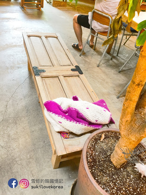 店主更刻意在這「小樹林」的中央擺放了一張鄉村味十足的木椅,供客人在這裡零死角美拍!