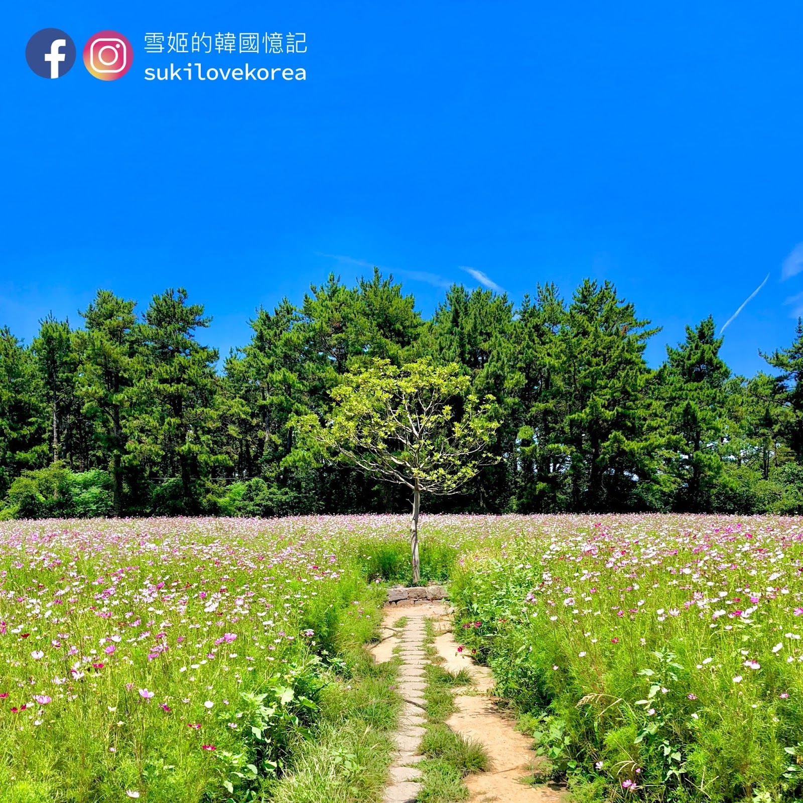 花海中刻意種植了一棵孤獨的樹,現在韓國人其實蠻喜歡拍一些只有一棵的大樹環境。