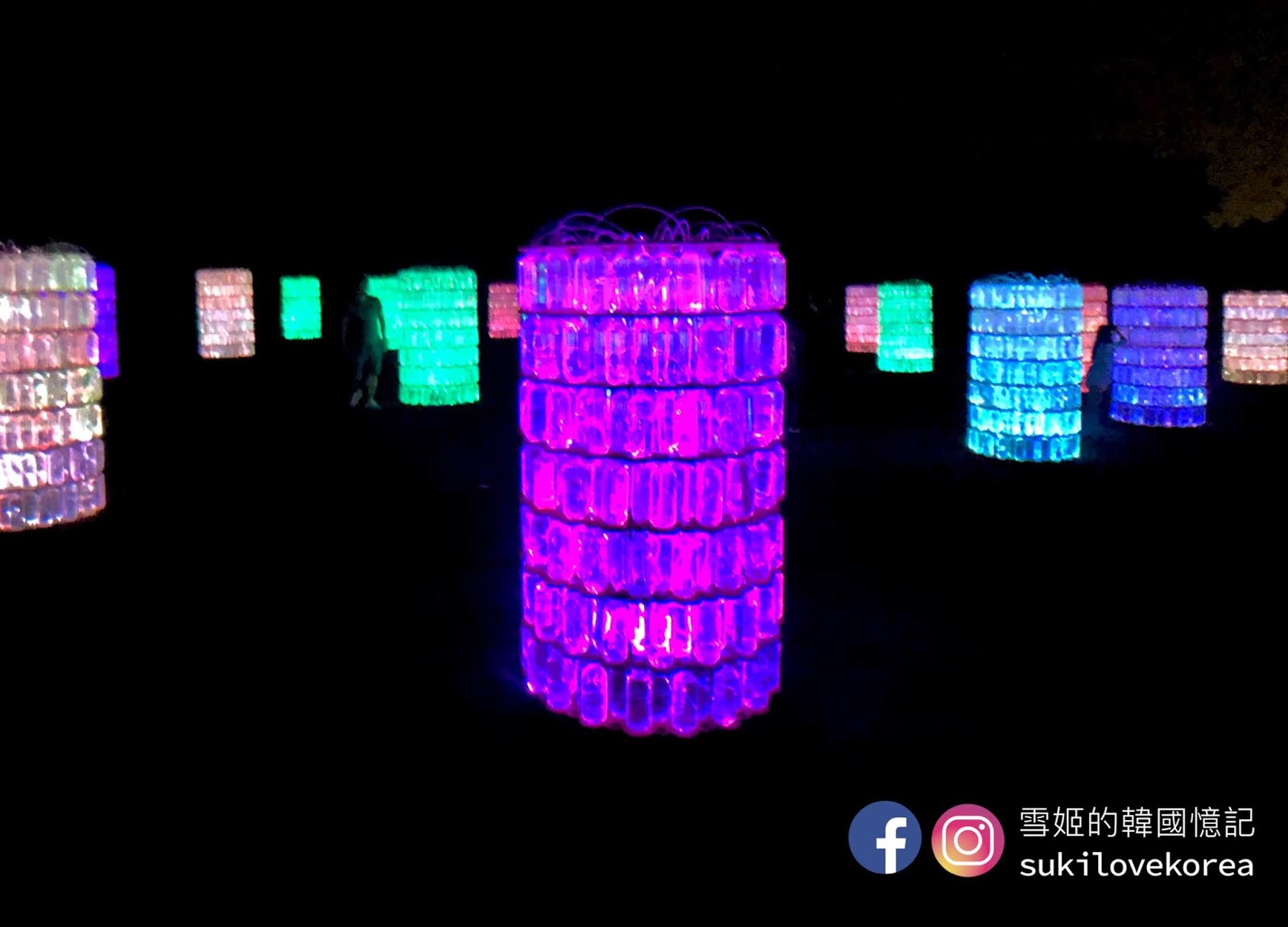 到了晚上7-8點慶典的各個燈飾裝置便會逐個亮起,但看展覽的人滿多和會場很大走的路蠻多,在參觀時要預留多點時間啊!