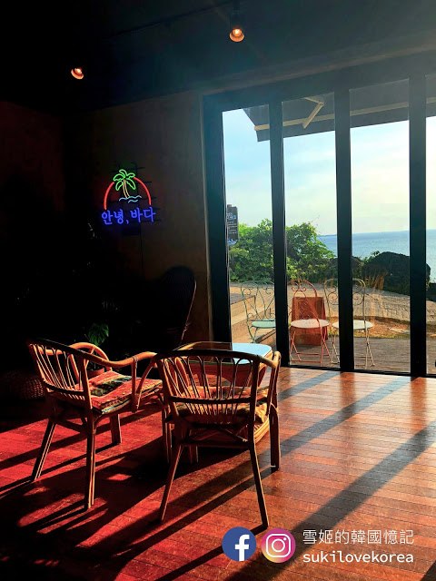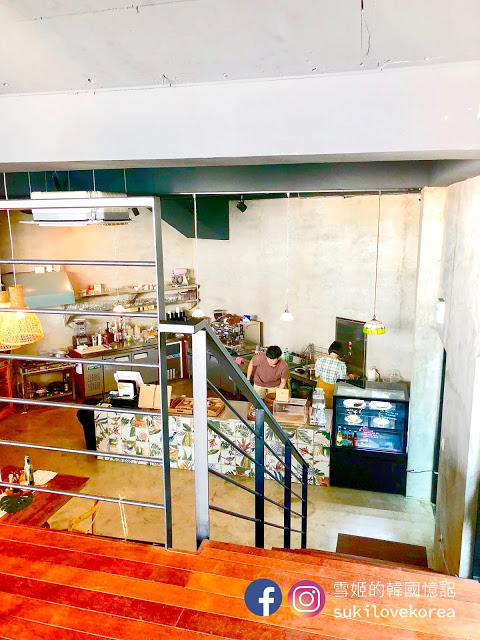 點好餐後大家亦可以托著自己點的餐飲走上樓閣坐下,樓閣是一道大大的面海玻璃門,坐在閣樓看著海嘆著咖啡感覺超治癒。